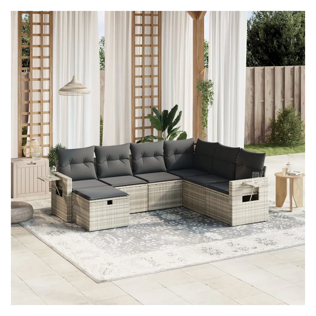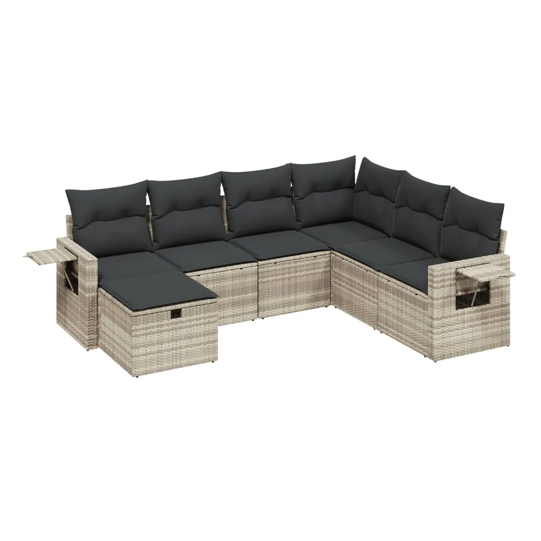 Salon de jardin avec coussins 7 pcs gris clair résine tressée