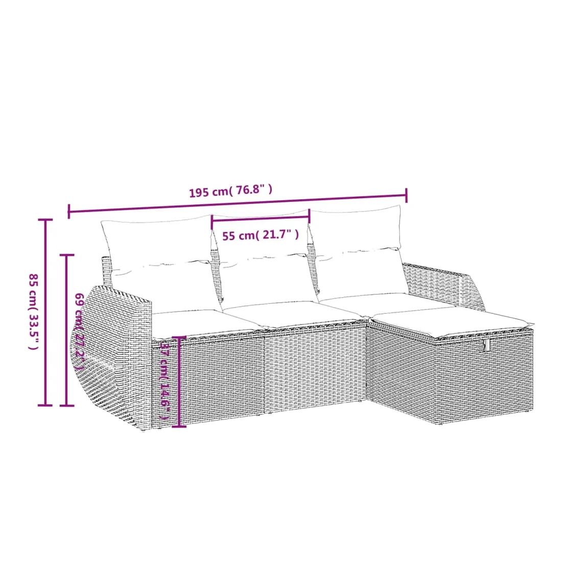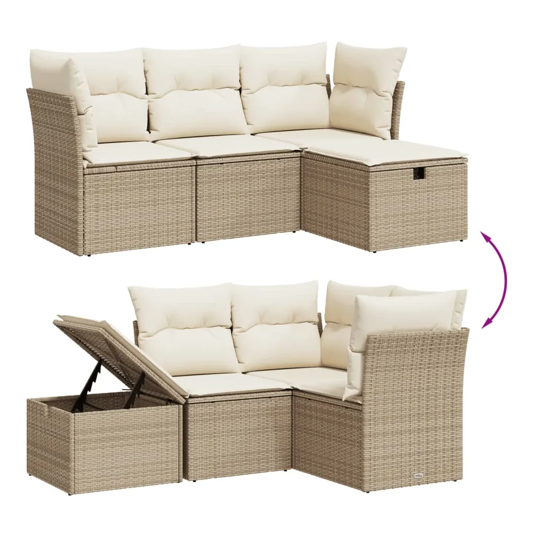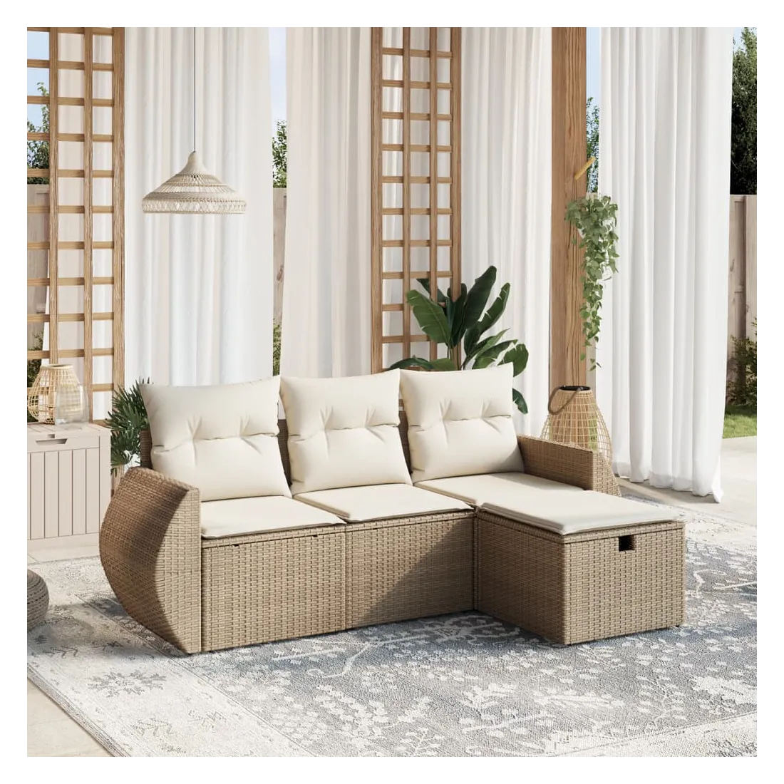 Cet ensemble de canapés de jardin est le complément parfait de votre arrière-cour, terrasse ou patio, offrant un espace confortable et accueillant pour discuter avec la famille et les amis ou simplement se détendre et profiter de l'extérieur. Matériau durable : la résine tressée, également connue sous le nom de poly rotin, est un matériau synthétique solide et nécessitant peu d'entretien qui ressemble au rotin naturel. Il est léger, facile à nettoyer et couramment utilisé pour les meubles d'extérieur en raison de sa durabilité et de ses propriétés de résistance aux intempéries.Expérience d'assise confortable : ce mobilier d'extérieur, doté de coussins épais, offre une expérience d'assise confortable.Housse amovible et lavable : ces coussins de siège sont dotés de housses amovibles pour un lavage et un entretien faciles.Cadre robuste et stable : le cadre en acier enduit de poudre assure la solidité et la stabilité du meuble de jardin pour une utilisation quotidienne à l'extérieur.Conception modulaire : cet ensemble de meubles d'extérieur a une conception modulaire, ce qui le rend complètement flexible et facile à déplacer, afin que vous puissiez créer un agencement de meubles d'extérieur personnalisé. Bon à savoir :Pour que vos meubles d'extérieur restent beaux, nous vous recommandons de les protéger avec une housse imperméable.