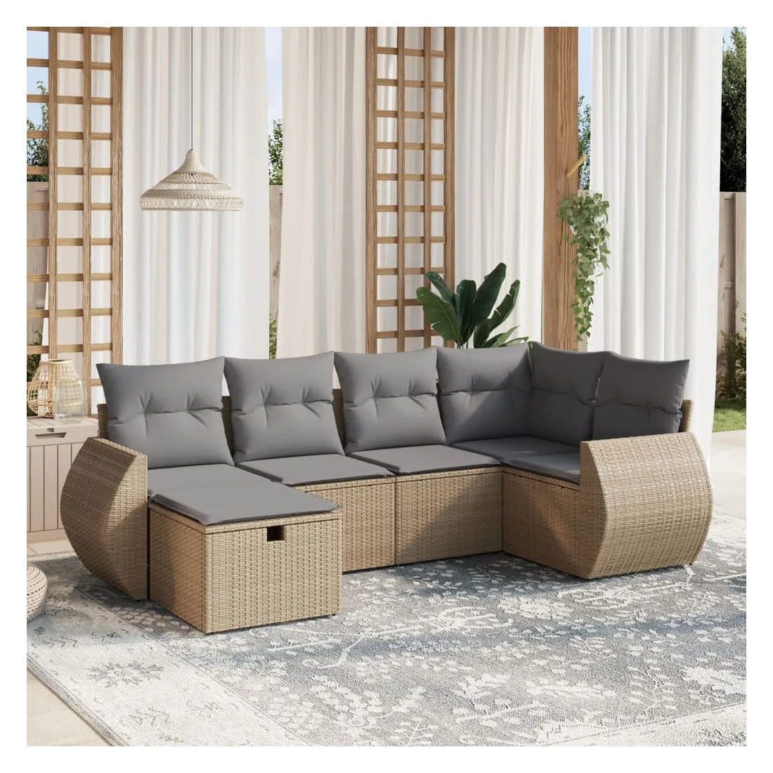 Cet ensemble de canapés de jardin est le complément parfait de votre arrière-cour, terrasse ou patio, offrant un espace confortable et accueillant pour discuter avec la famille et les amis ou simplement se détendre et profiter de l'extérieur. Matériau durable : la résine tressée, également connue sous le nom de poly rotin, est un matériau synthétique solide et nécessitant peu d'entretien qui ressemble au rotin naturel. Il est léger, facile à nettoyer et couramment utilisé pour les meubles d'extérieur en raison de sa durabilité et de ses propriétés de résistance aux intempéries.Expérience d'assise confortable : ce mobilier d'extérieur, doté de coussins épais, offre une expérience d'assise confortable.Housse amovible et lavable : ces coussins de siège sont dotés de housses amovibles pour un lavage et un entretien faciles.Cadre robuste et stable : le cadre en acier enduit de poudre assure la solidité et la stabilité du meuble de jardin pour une utilisation quotidienne à l'extérieur.Conception modulaire : cet ensemble de meubles d'extérieur a une conception modulaire, ce qui le rend complètement flexible et facile à déplacer, afin que vous puissiez créer un agencement de meubles d'extérieur personnalisé. Bon à savoir :Pour que vos meubles d'extérieur restent beaux, nous vous recommandons de les protéger avec une housse imperméable.
