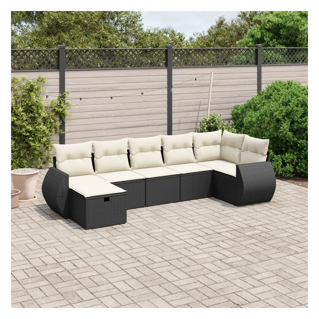 Cet ensemble de canapés de jardin est le complément parfait de votre arrière-cour, terrasse ou patio, offrant un espace confortable et accueillant pour discuter avec la famille et les amis ou simplement se détendre et profiter de l'extérieur. Matériau durable : la résine tressée, également connue sous le nom de poly rotin, est un matériau synthétique solide et nécessitant peu d'entretien qui ressemble au rotin naturel. Il est léger, facile à nettoyer et couramment utilisé pour les meubles d'extérieur en raison de sa durabilité et de ses propriétés de résistance aux intempéries.Expérience d'assise confortable : ce mobilier d'extérieur, doté de coussins épais, offre une expérience d'assise confortable.Housse amovible et lavable : ces coussins de siège sont dotés de housses amovibles pour un lavage et un entretien faciles.Cadre robuste et stable : le cadre en acier enduit de poudre assure la solidité et la stabilité du meuble de jardin pour une utilisation quotidienne à l'extérieur.Conception modulaire : cet ensemble de meubles d'extérieur a une conception modulaire, ce qui le rend complètement flexible et facile à déplacer, afin que vous puissiez créer un agencement de meubles d'extérieur personnalisé. Bon à savoir :Pour que vos meubles d'extérieur restent beaux, nous vous recommandons de les protéger avec une housse imperméable.