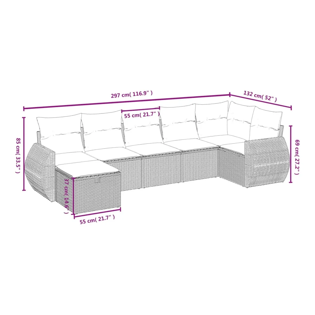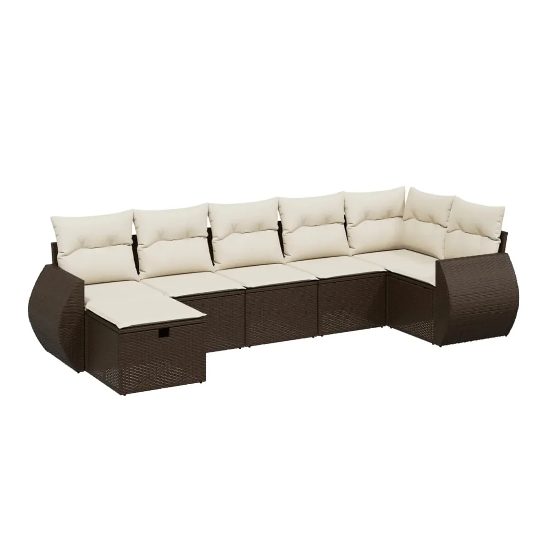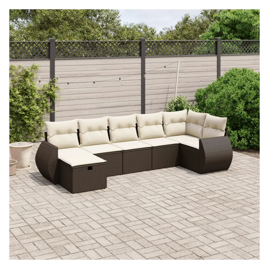 Salon de jardin avec coussins 7 pcs marron résine tressée