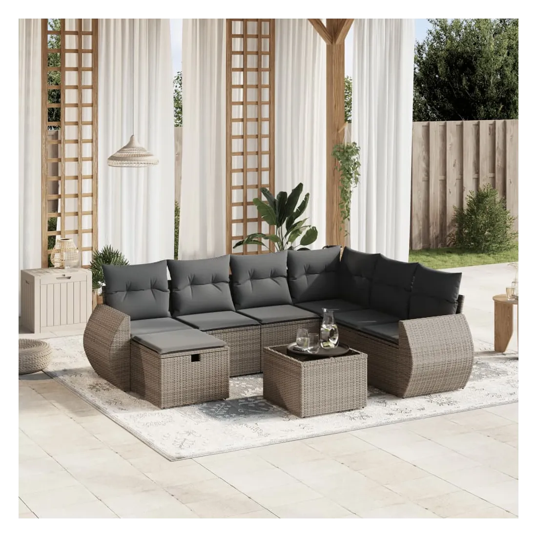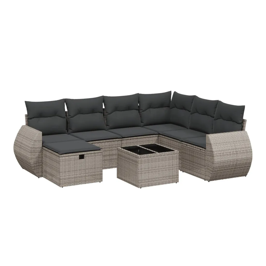 Salon de jardin 8 pcs avec coussins gris résine tressée