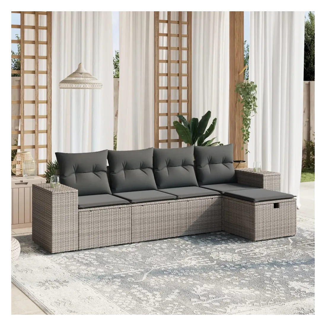 Cet ensemble de canapés de jardin est le complément parfait de votre arrière-cour, terrasse ou patio, offrant un espace confortable et accueillant pour discuter avec la famille et les amis ou simplement se détendre et profiter de l'extérieur. Matériau durable : la résine tressée, également connue sous le nom de poly rotin, est un matériau synthétique solide et nécessitant peu d'entretien qui ressemble au rotin naturel. Il est léger, facile à nettoyer et couramment utilisé pour les meubles d'extérieur en raison de sa durabilité et de ses propriétés de résistance aux intempéries.Expérience d'assise confortable : ce mobilier d'extérieur, doté de coussins épais, offre une expérience d'assise confortable.Housse amovible et lavable : ces coussins de siège sont dotés de housses amovibles pour un lavage et un entretien faciles.Cadre robuste et stable : le cadre en acier enduit de poudre assure la solidité et la stabilité du meuble de jardin pour une utilisation quotidienne à l'extérieur.Conception modulaire : cet ensemble de meubles d'extérieur a une conception modulaire, ce qui le rend complètement flexible et facile à déplacer, afin que vous puissiez créer un agencement de meubles d'extérieur personnalisé. Bon à savoir :Pour que vos meubles d'extérieur restent beaux, nous vous recommandons de les protéger avec une housse imperméable.