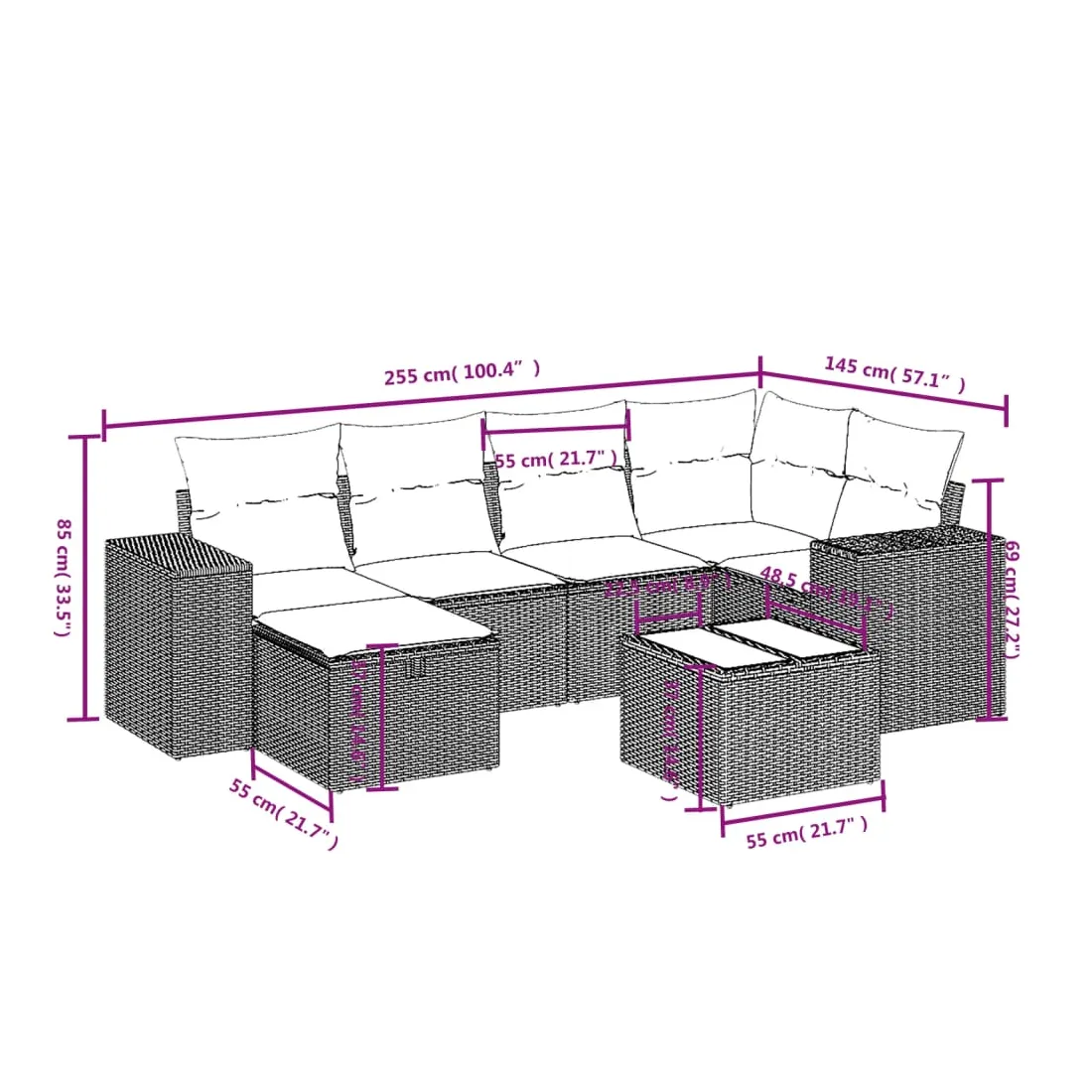 - Dimensions : 55 x 55 x 37 cm (L x l x H)