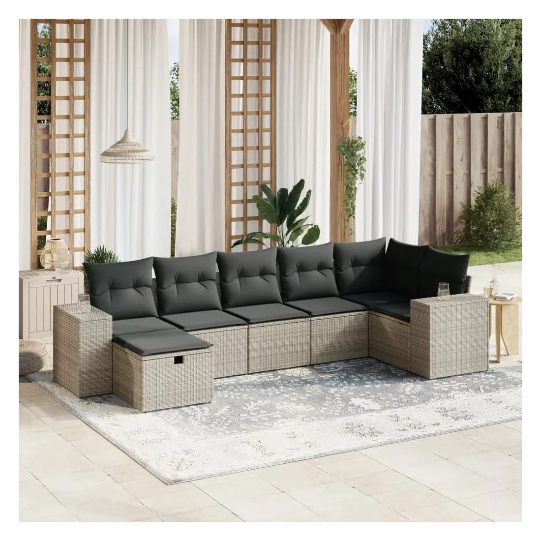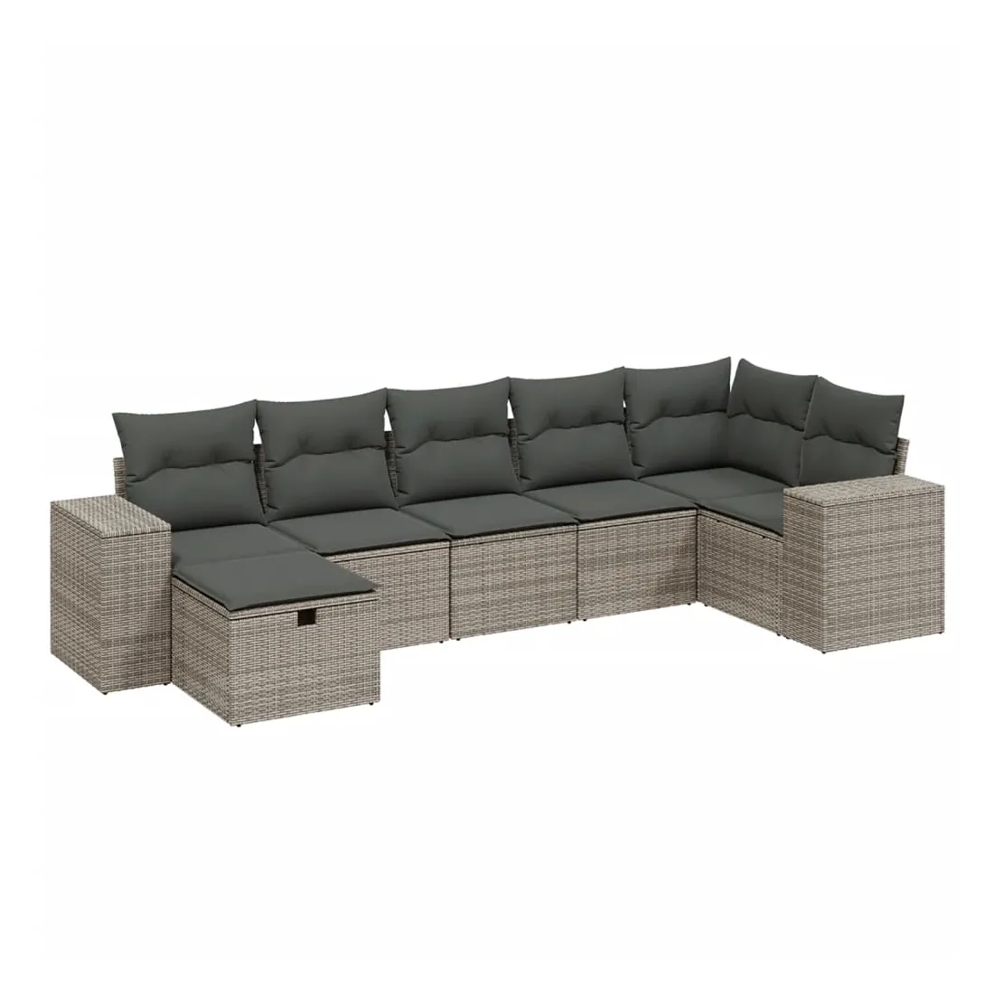Salon de jardin avec coussins 7 pcs gris résine tressée