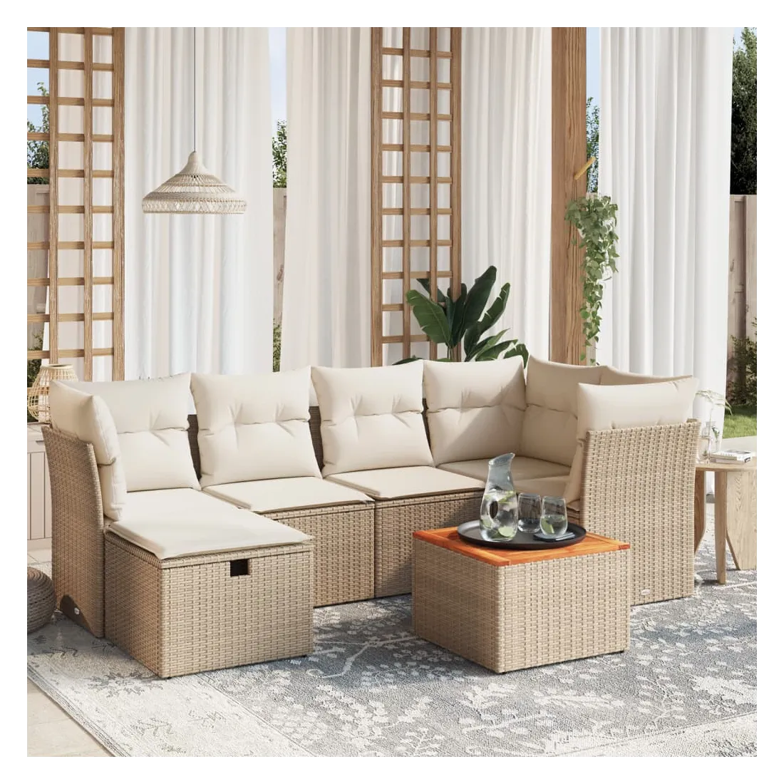 Cet ensemble de canapés de jardin est le complément parfait de votre arrière-cour, terrasse ou patio, offrant un espace confortable et accueillant pour discuter avec la famille et les amis ou simplement se détendre et profiter de l'extérieur. Matériau durable : la résine tressée, également connue sous le nom de poly rotin, est un matériau synthétique solide et nécessitant peu d'entretien qui ressemble au rotin naturel. Il est léger, facile à nettoyer et couramment utilisé pour les meubles d'extérieur en raison de sa durabilité et de ses propriétés de résistance aux intempéries.Dessus stable et facile à nettoyer : cette table de jardin a un dessus en bois d'acacia robuste, durable et facile à nettoyer avec un chiffon humide.Housse amovible et lavable : ces coussins de siège sont dotés de housses amovibles pour un lavage et un entretien faciles.Cadre robuste et stable : le cadre en acier enduit de poudre assure la solidité et la stabilité du meuble de jardin pour une utilisation quotidienne à l'extérieur.Conception modulaire : cet ensemble de meubles d'extérieur a une conception modulaire, ce qui le rend complètement flexible et facile à déplacer, afin que vous puissiez créer un agencement de meubles d'extérieur personnalisé. Bon à savoir :Pour que vos meubles d'extérieur restent beaux, nous vous recommandons de les protéger avec une housse imperméable.
