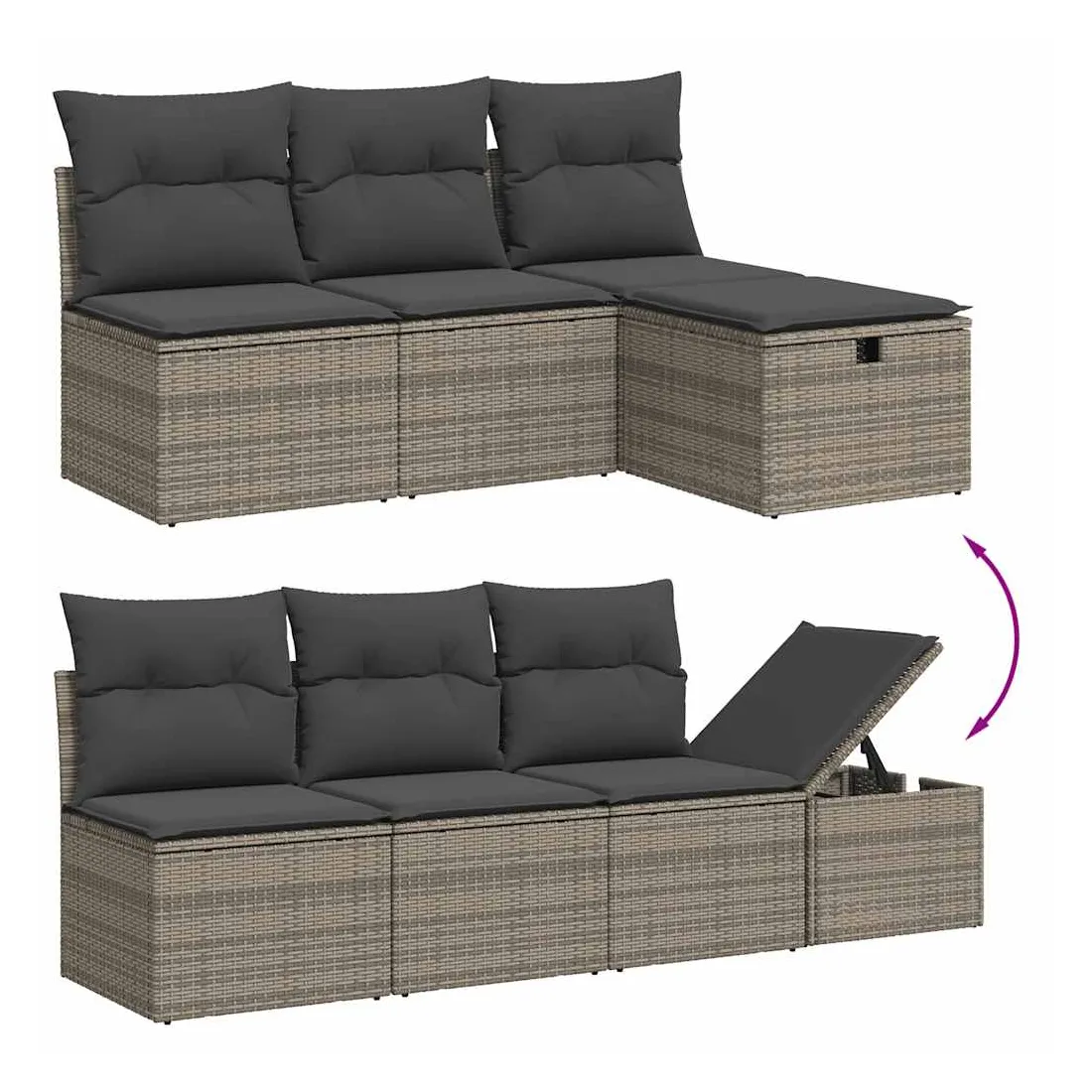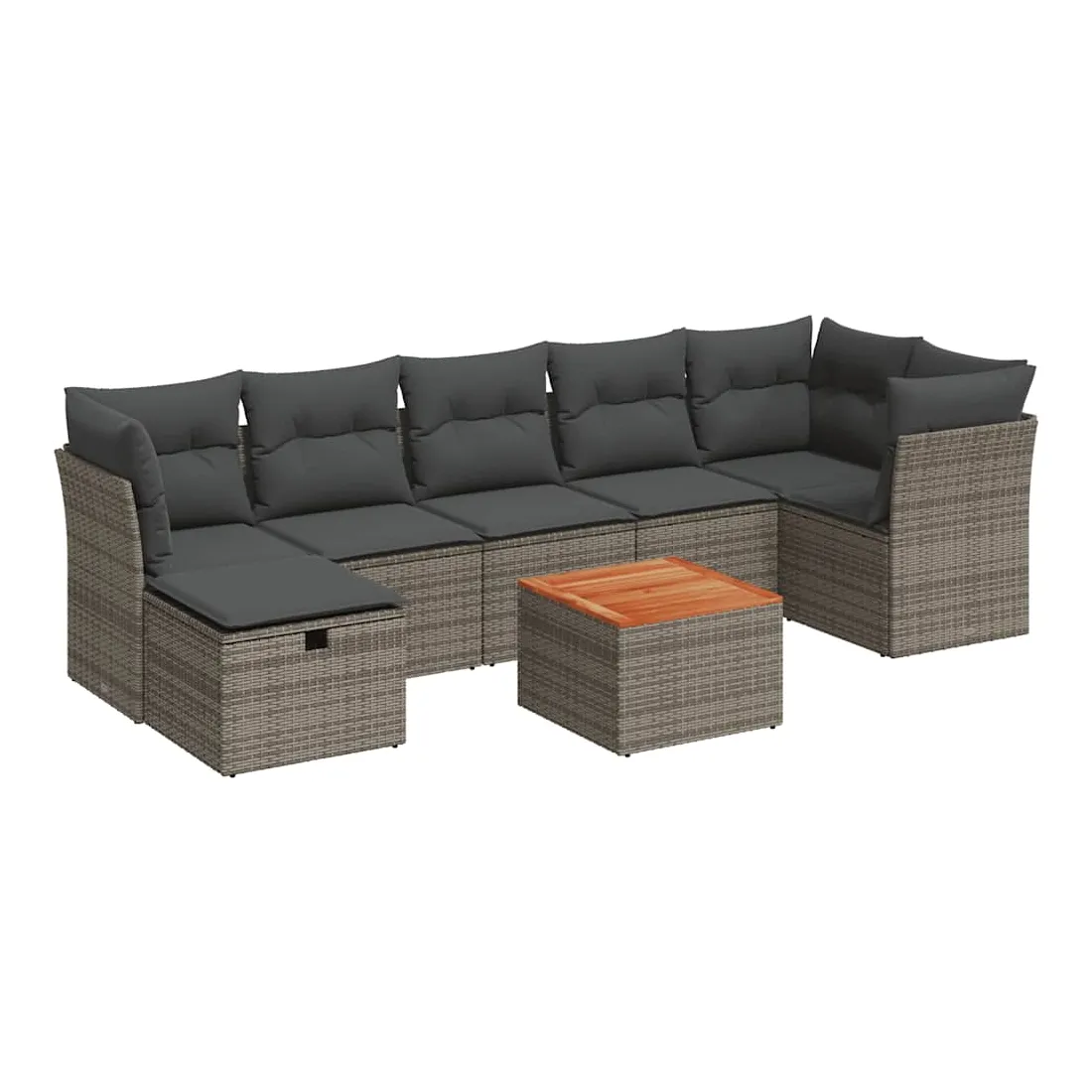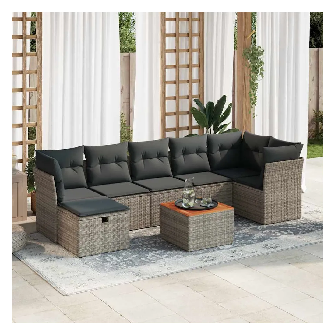 Cet ensemble de canapés de jardin est le complément parfait de votre arrière-cour, terrasse ou patio, offrant un espace confortable et accueillant pour discuter avec la famille et les amis ou simplement se détendre et profiter de l'extérieur. Matériau durable : la résine tressée, également connue sous le nom de poly rotin, est un matériau synthétique solide et nécessitant peu d'entretien qui ressemble au rotin naturel. Il est léger, facile à nettoyer et couramment utilisé pour les meubles d'extérieur en raison de sa durabilité et de ses propriétés de résistance aux intempéries.Dessus stable et facile à nettoyer : cette table de jardin a un dessus en bois d'acacia robuste, durable et facile à nettoyer avec un chiffon humide.Housse amovible et lavable : ces coussins de siège sont dotés de housses amovibles pour un lavage et un entretien faciles.Cadre robuste et stable : le cadre en acier enduit de poudre assure la solidité et la stabilité du meuble de jardin pour une utilisation quotidienne à l'extérieur.Conception modulaire : cet ensemble de meubles d'extérieur a une conception modulaire, ce qui le rend complètement flexible et facile à déplacer, afin que vous puissiez créer un agencement de meubles d'extérieur personnalisé. Bon à savoir :Pour que vos meubles d'extérieur restent beaux, nous vous recommandons de les protéger avec une housse imperméable.