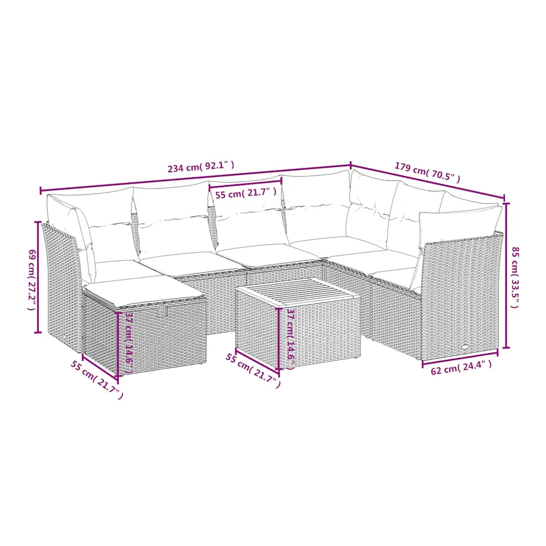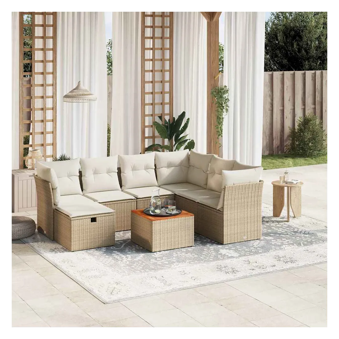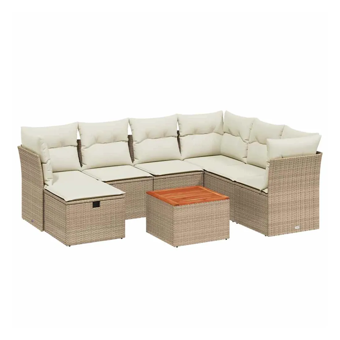 Salon de jardin avec coussins 8 pcs beige résine tressée