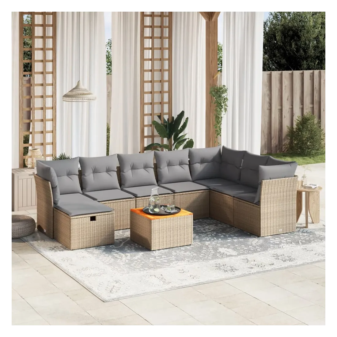 Cet ensemble de canapés de jardin est le complément parfait de votre arrière-cour, terrasse ou patio, offrant un espace confortable et accueillant pour discuter avec la famille et les amis ou simplement se détendre et profiter de l'extérieur. Matériau durable : la résine tressée, également connue sous le nom de poly rotin, est un matériau synthétique solide et nécessitant peu d'entretien qui ressemble au rotin naturel. Il est léger, facile à nettoyer et couramment utilisé pour les meubles d'extérieur en raison de sa durabilité et de ses propriétés de résistance aux intempéries.Dessus stable et facile à nettoyer : cette table de jardin a un dessus en bois d'acacia robuste, durable et facile à nettoyer avec un chiffon humide.Housse amovible et lavable : ces coussins de siège sont dotés de housses amovibles pour un lavage et un entretien faciles.Cadre robuste et stable : le cadre en acier enduit de poudre assure la solidité et la stabilité du meuble de jardin pour une utilisation quotidienne à l'extérieur.Conception modulaire : cet ensemble de meubles d'extérieur a une conception modulaire, ce qui le rend complètement flexible et facile à déplacer, afin que vous puissiez créer un agencement de meubles d'extérieur personnalisé. Bon à savoir :Pour que vos meubles d'extérieur restent beaux, nous vous recommandons de les protéger avec une housse imperméable.