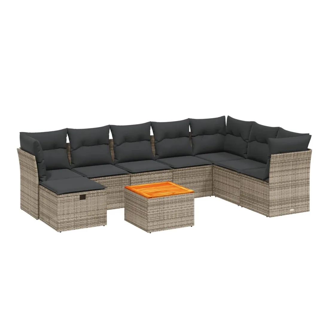 Cet ensemble de canapés de jardin est le complément parfait de votre arrière-cour, terrasse ou patio, offrant un espace confortable et accueillant pour discuter avec la famille et les amis ou simplement se détendre et profiter de l'extérieur. Matériau durable : la résine tressée, également connue sous le nom de poly rotin, est un matériau synthétique solide et nécessitant peu d'entretien qui ressemble au rotin naturel. Il est léger, facile à nettoyer et couramment utilisé pour les meubles d'extérieur en raison de sa durabilité et de ses propriétés de résistance aux intempéries.Dessus stable et facile à nettoyer : cette table de jardin a un dessus en bois d'acacia robuste, durable et facile à nettoyer avec un chiffon humide.Housse amovible et lavable : ces coussins de siège sont dotés de housses amovibles pour un lavage et un entretien faciles.Cadre robuste et stable : le cadre en acier enduit de poudre assure la solidité et la stabilité du meuble de jardin pour une utilisation quotidienne à l'extérieur.Conception modulaire : cet ensemble de meubles d'extérieur a une conception modulaire, ce qui le rend complètement flexible et facile à déplacer, afin que vous puissiez créer un agencement de meubles d'extérieur personnalisé. Bon à savoir :Pour que vos meubles d'extérieur restent beaux, nous vous recommandons de les protéger avec une housse imperméable.