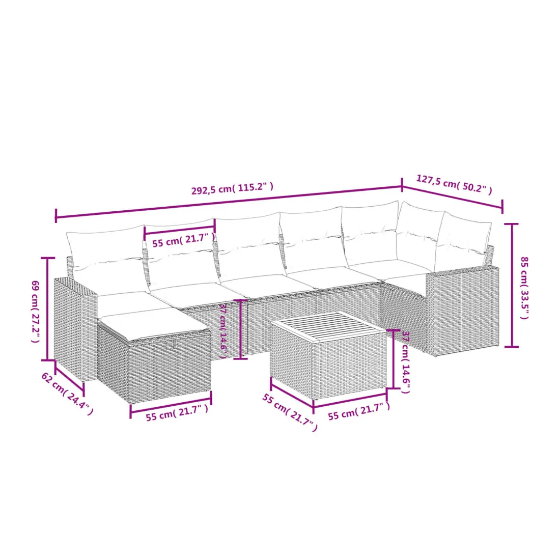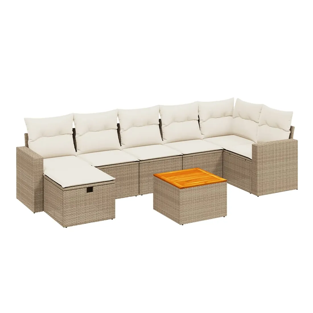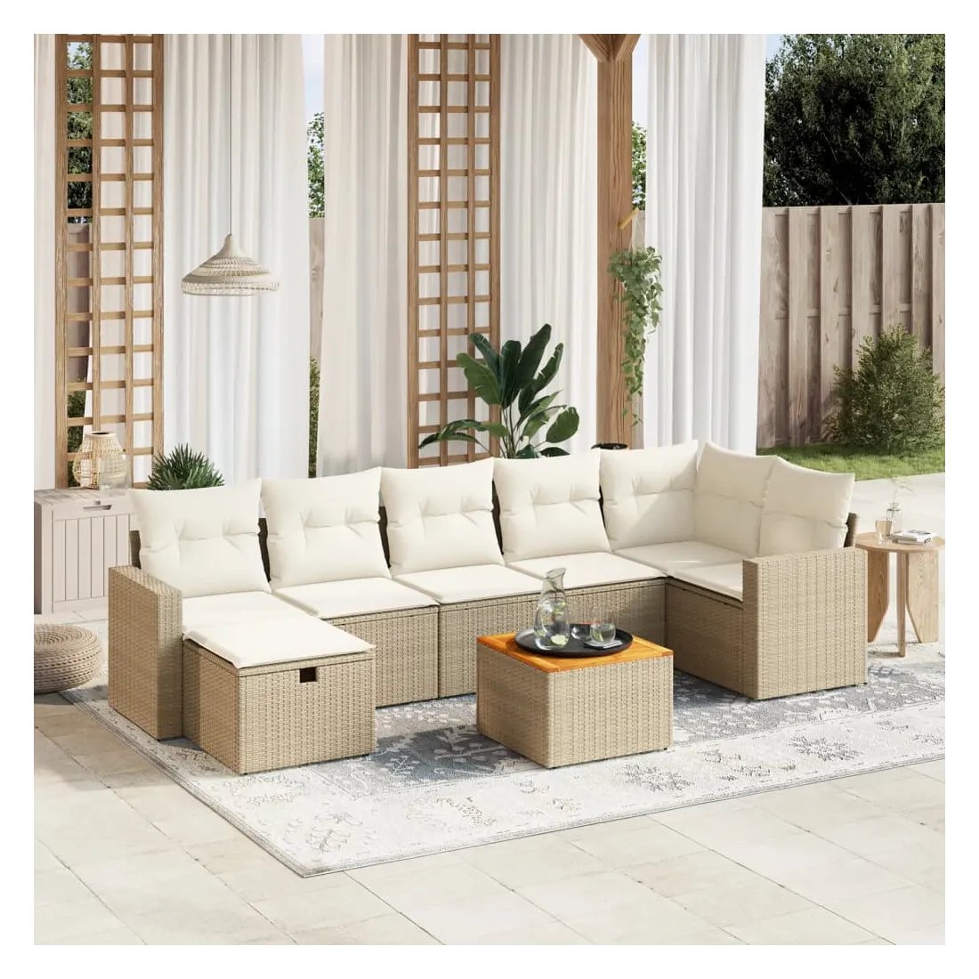 Salon de jardin avec coussins 8 pcs beige résine tressée