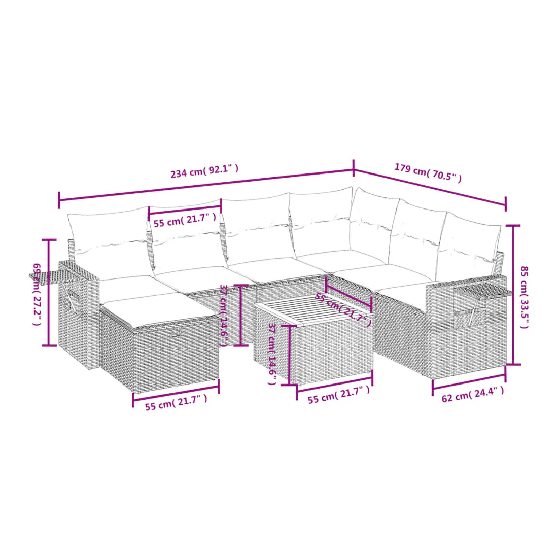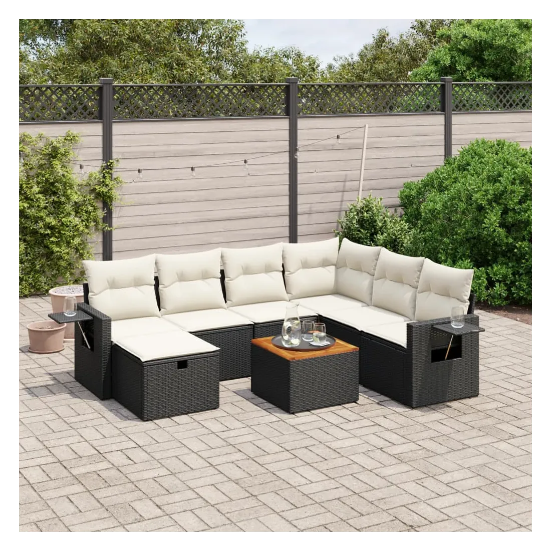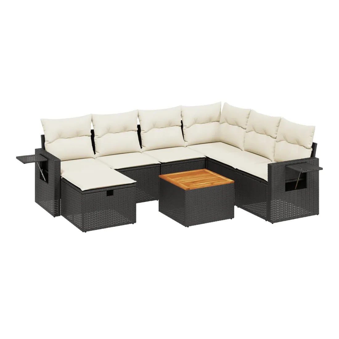 Salon de jardin 8 pcs avec coussins noir résine tressée