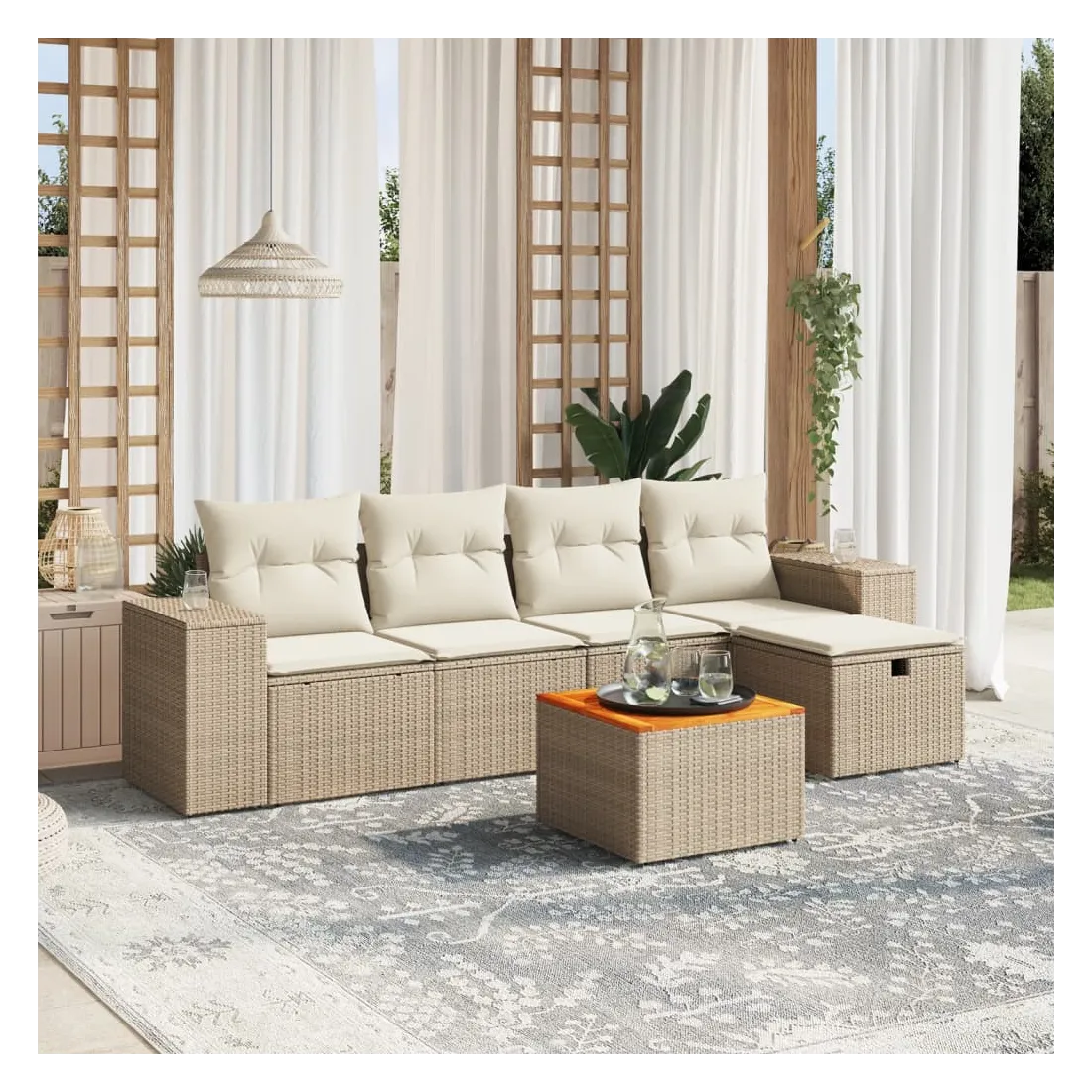 Cet ensemble de canapés de jardin est le complément parfait de votre arrière-cour, terrasse ou patio, offrant un espace confortable et accueillant pour discuter avec la famille et les amis ou simplement se détendre et profiter de l'extérieur. Matériau durable : la résine tressée, également connue sous le nom de poly rotin, est un matériau synthétique solide et nécessitant peu d'entretien qui ressemble au rotin naturel. Il est léger, facile à nettoyer et couramment utilisé pour les meubles d'extérieur en raison de sa durabilité et de ses propriétés de résistance aux intempéries.Dessus stable et facile à nettoyer : cette table de jardin a un dessus en bois d'acacia robuste, durable et facile à nettoyer avec un chiffon humide.Housse amovible et lavable : ces coussins de siège sont dotés de housses amovibles pour un lavage et un entretien faciles.Cadre robuste et stable : le cadre en acier enduit de poudre assure la solidité et la stabilité du meuble de jardin pour une utilisation quotidienne à l'extérieur.Conception modulaire : cet ensemble de meubles d'extérieur a une conception modulaire, ce qui le rend complètement flexible et facile à déplacer, afin que vous puissiez créer un agencement de meubles d'extérieur personnalisé. Bon à savoir :Pour que vos meubles d'extérieur restent beaux, nous vous recommandons de les protéger avec une housse imperméable.