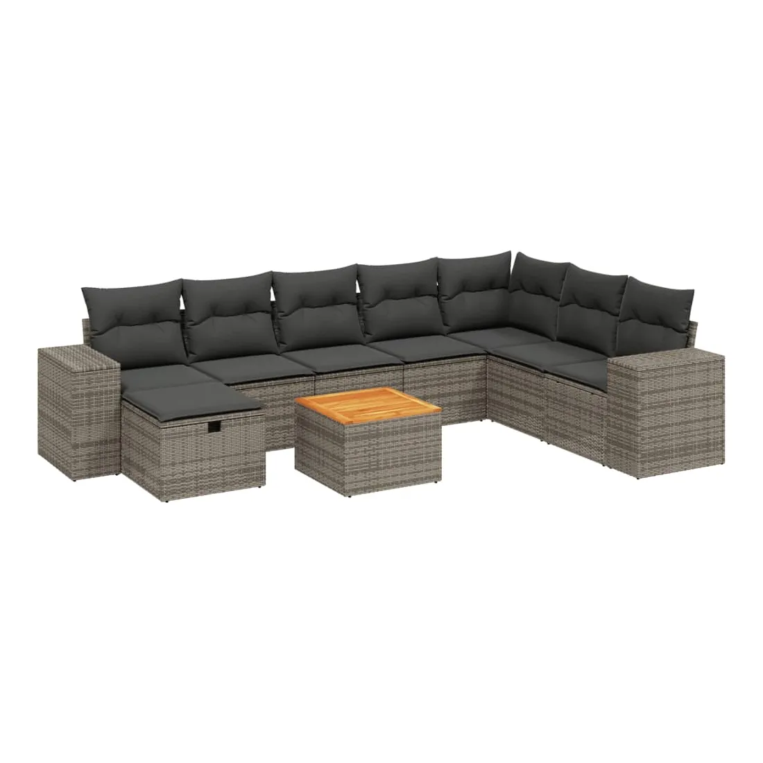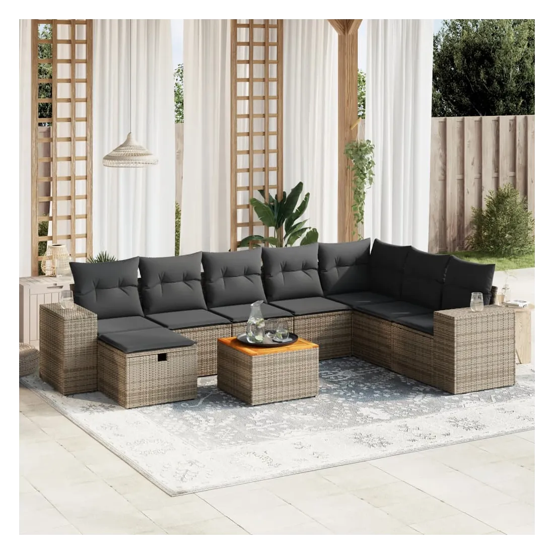 Cet ensemble de canapés de jardin est le complément parfait de votre arrière-cour, terrasse ou patio, offrant un espace confortable et accueillant pour discuter avec la famille et les amis ou simplement se détendre et profiter de l'extérieur. Matériau durable : la résine tressée, également connue sous le nom de poly rotin, est un matériau synthétique solide et nécessitant peu d'entretien qui ressemble au rotin naturel. Il est léger, facile à nettoyer et couramment utilisé pour les meubles d'extérieur en raison de sa durabilité et de ses propriétés de résistance aux intempéries.Dessus stable et facile à nettoyer : cette table de jardin a un dessus en bois d'acacia robuste, durable et facile à nettoyer avec un chiffon humide.Housse amovible et lavable : ces coussins de siège sont dotés de housses amovibles pour un lavage et un entretien faciles.Cadre robuste et stable : le cadre en acier enduit de poudre assure la solidité et la stabilité du meuble de jardin pour une utilisation quotidienne à l'extérieur.Conception modulaire : cet ensemble de meubles d'extérieur a une conception modulaire, ce qui le rend complètement flexible et facile à déplacer, afin que vous puissiez créer un agencement de meubles d'extérieur personnalisé. Bon à savoir :Pour que vos meubles d'extérieur restent beaux, nous vous recommandons de les protéger avec une housse imperméable.