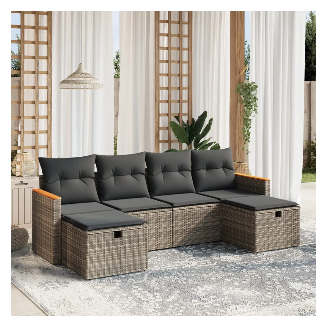 Cet ensemble de canapés de jardin est le complément parfait de votre arrière-cour, terrasse ou patio, offrant un espace confortable et accueillant pour discuter avec la famille et les amis ou simplement se détendre et profiter de l'extérieur. Matériau durable : la résine tressée, également connue sous le nom de poly rotin, est un matériau synthétique solide et nécessitant peu d'entretien qui ressemble au rotin naturel. Il est léger, facile à nettoyer et couramment utilisé pour les meubles d'extérieur en raison de sa durabilité et de ses propriétés de résistance aux intempéries.Expérience d'assise confortable : ce mobilier d'extérieur, doté de coussins épais, offre une expérience d'assise confortable.Housse amovible et lavable : ces coussins de siège sont dotés de housses amovibles pour un lavage et un entretien faciles.Cadre robuste et stable : le cadre en acier enduit de poudre assure la solidité et la stabilité du meuble de jardin pour une utilisation quotidienne à l'extérieur.Conception modulaire : cet ensemble de meubles d'extérieur a une conception modulaire, ce qui le rend complètement flexible et facile à déplacer, afin que vous puissiez créer un agencement de meubles d'extérieur personnalisé. Bon à savoir :Pour que vos meubles d'extérieur restent beaux, nous vous recommandons de les protéger avec une housse imperméable.