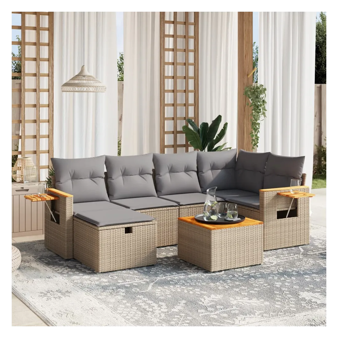 Cet ensemble de canapés de jardin est le complément parfait de votre arrière-cour, terrasse ou patio, offrant un espace confortable et accueillant pour discuter avec la famille et les amis ou simplement se détendre et profiter de l'extérieur. Matériau durable : la résine tressée, également connue sous le nom de poly rotin, est un matériau synthétique solide et nécessitant peu d'entretien qui ressemble au rotin naturel. Il est léger, facile à nettoyer et couramment utilisé pour les meubles d'extérieur en raison de sa durabilité et de ses propriétés de résistance aux intempéries.Dessus stable et facile à nettoyer : cette table de jardin a un dessus en bois d'acacia robuste, durable et facile à nettoyer avec un chiffon humide.Housse amovible et lavable : ces coussins de siège sont dotés de housses amovibles pour un lavage et un entretien faciles.Cadre robuste et stable : le cadre en acier enduit de poudre assure la solidité et la stabilité du meuble de jardin pour une utilisation quotidienne à l'extérieur.Conception modulaire : cet ensemble de meubles d'extérieur a une conception modulaire, ce qui le rend complètement flexible et facile à déplacer, afin que vous puissiez créer un agencement de meubles d'extérieur personnalisé. Bon à savoir :Pour que vos meubles d'extérieur restent beaux, nous vous recommandons de les protéger avec une housse imperméable.