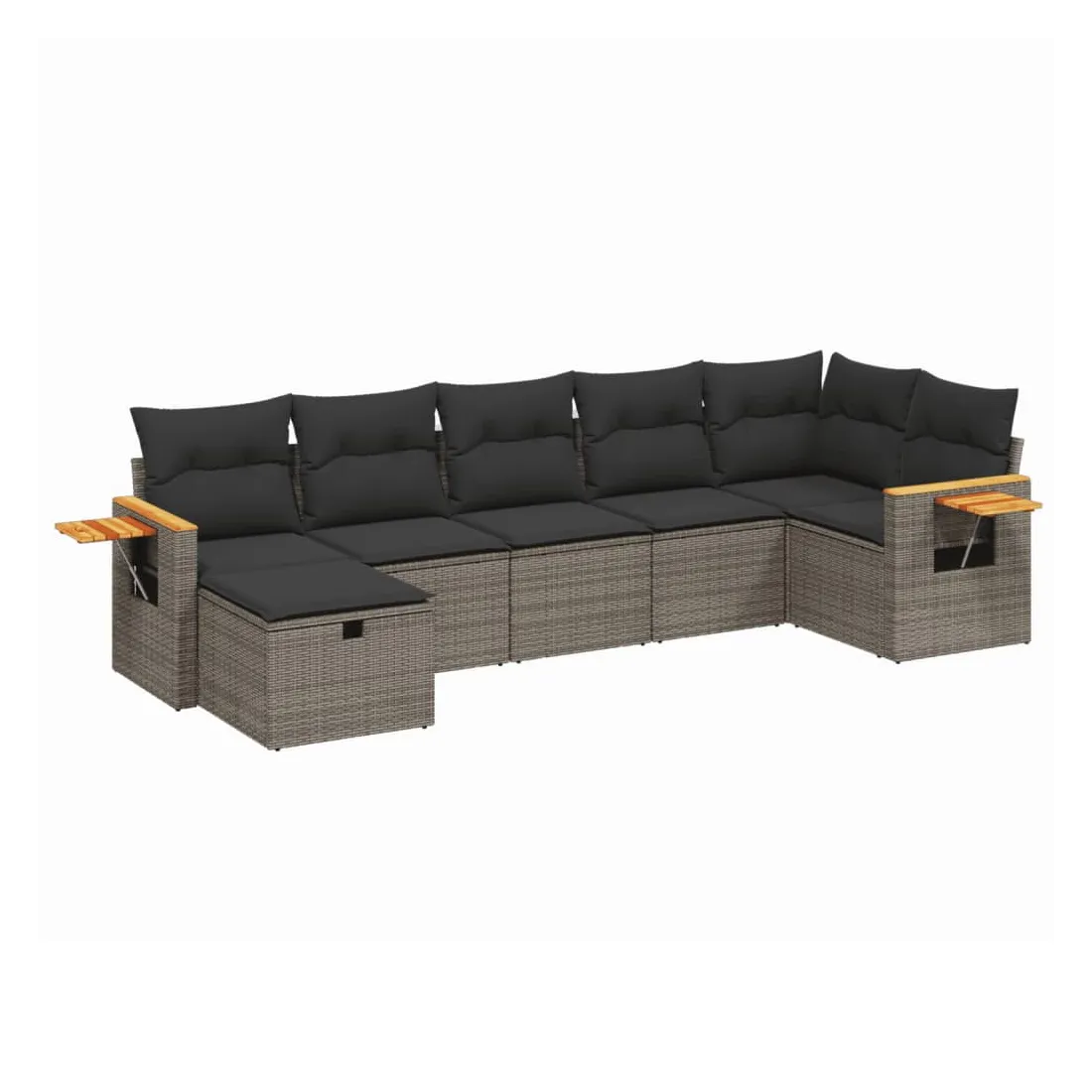 Salon de jardin avec coussins 7 pcs gris résine tressée