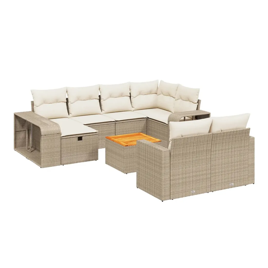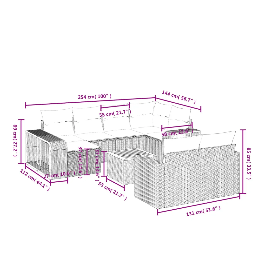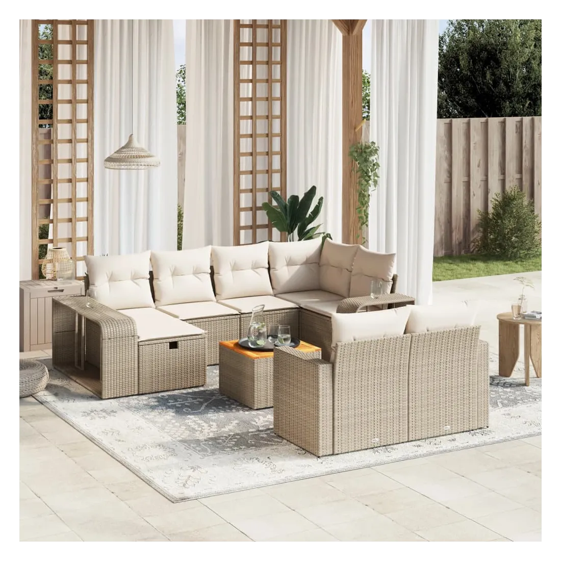 Cet ensemble de canapés de jardin est le complément parfait de votre arrière-cour, terrasse ou patio, offrant un espace confortable et accueillant pour discuter avec la famille et les amis ou simplement se détendre et profiter de l'extérieur. Matériau durable : la résine tressée, également connue sous le nom de poly rotin, est un matériau synthétique solide et nécessitant peu d'entretien qui ressemble au rotin naturel. Il est léger, facile à nettoyer et couramment utilisé pour les meubles d'extérieur en raison de sa durabilité et de ses propriétés de résistance aux intempéries.Dessus stable et facile à nettoyer : cette table de jardin a un dessus en bois d'acacia robuste, durable et facile à nettoyer avec un chiffon humide.Grand espace de rangement : avec un espace de rangement intégré, ce meuble d'extérieur offre un grand espace de rangement pour garder vos objets essentiels organisés et facilement accessibles.Housse amovible et lavable : ces coussins de siège sont dotés de housses amovibles pour un lavage et un entretien faciles.Conception modulaire : cet ensemble de meubles d'extérieur a une conception modulaire, ce qui le rend complètement flexible et facile à déplacer, afin que vous puissiez créer un agencement de meubles d'extérieur personnalisé. Bon à savoir :Pour que vos meubles d'extérieur restent beaux, nous vous recommandons de les protéger avec une housse imperméable.