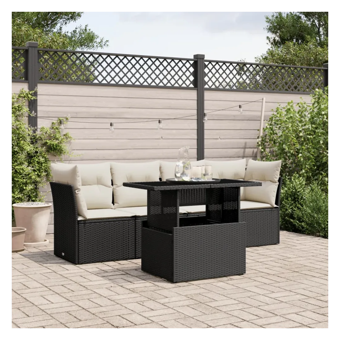 Cet ensemble de canapés de jardin est le complément parfait de votre arrière-cour, terrasse ou patio, offrant un espace confortable et accueillant pour discuter avec la famille et les amis ou simplement se détendre et profiter de l'extérieur. Matériau durable : la résine tressée, également connue sous le nom de poly rotin, est un matériau synthétique solide et nécessitant peu d'entretien qui ressemble au rotin naturel. Il est léger, facile à nettoyer et couramment utilisé pour les meubles d'extérieur en raison de sa durabilité et de ses propriétés de résistance aux intempéries.Dessus de table réglable : le dessus de table peut être soulevé pour rendre la table plus haute, ce qui transforme la table d'extérieur d'une table basse à une table de salle à manger. Elle est parfaite pour recevoir des invités ou prendre des repas à l'extérieur.Expérience d'assise confortable : ce mobilier d'extérieur, doté de coussins épais, offre une expérience d'assise confortable.Housse amovible et lavable : ces coussins de siège sont dotés de housses amovibles pour un lavage et un entretien faciles.Conception modulaire : cet ensemble de meubles d'extérieur a une conception modulaire, ce qui le rend complètement flexible et facile à déplacer, afin que vous puissiez créer un agencement de meubles d'extérieur personnalisé. Bon à savoir :Pour que vos meubles d'extérieur restent beaux, nous vous recommandons de les protéger avec une housse imperméable.
