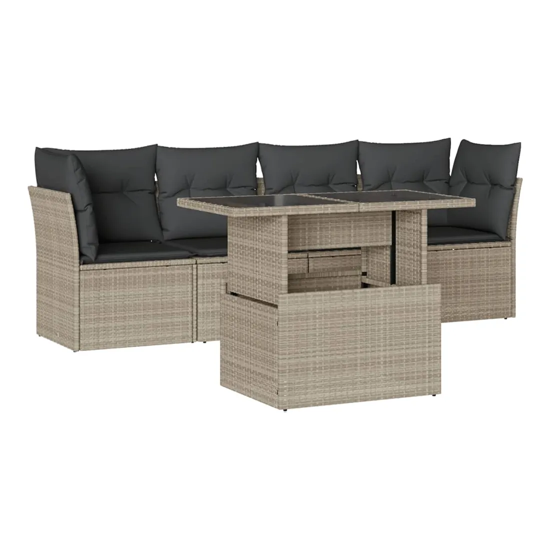 Cet ensemble de canapés de jardin est le complément parfait de votre arrière-cour, terrasse ou patio, offrant un espace confortable et accueillant pour discuter avec la famille et les amis ou simplement se détendre et profiter de l'extérieur. Matériau durable : la résine tressée, également connue sous le nom de poly rotin, est un matériau synthétique solide et nécessitant peu d'entretien qui ressemble au rotin naturel. Elle est légère, facile à nettoyer et couramment utilisée pour les meubles d'extérieur en raison de sa durabilité et de ses propriétés de résistance aux intempéries.Dessus de table réglable : le dessus de table peut être soulevé pour rendre la table plus haute, ce qui transforme la table d'extérieur d'une table basse à une table de salle à manger. Elle est parfaite pour recevoir des invités ou prendre des repas à l'extérieur.Expérience d'assise confortable : ce mobilier d'extérieur, doté de coussins épais, offre une expérience d'assise confortable.Housse amovible et lavable : ces coussins de siège sont dotés de housses amovibles pour un lavage et un entretien faciles.Conception modulaire : cet ensemble de meubles d'extérieur a une conception modulaire, ce qui le rend complètement flexible et facile à déplacer, afin que vous puissiez créer un agencement de meubles d'extérieur personnalisé. Bon à savoir :Pour que vos meubles d'extérieur restent beaux, nous vous recommandons de les protéger avec une housse imperméable.