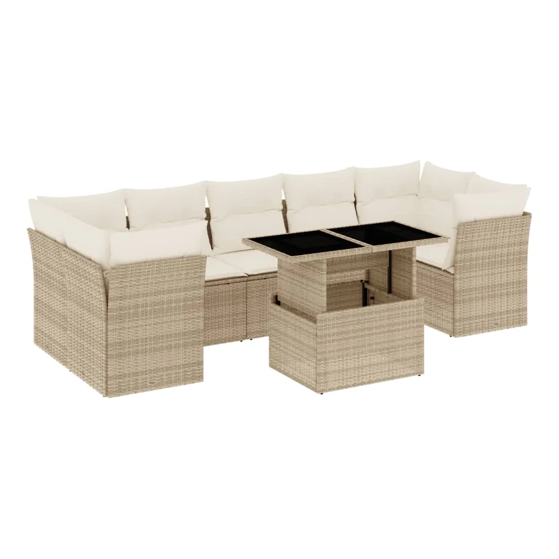 Salon de jardin avec coussins 8 pcs beige résine tressée