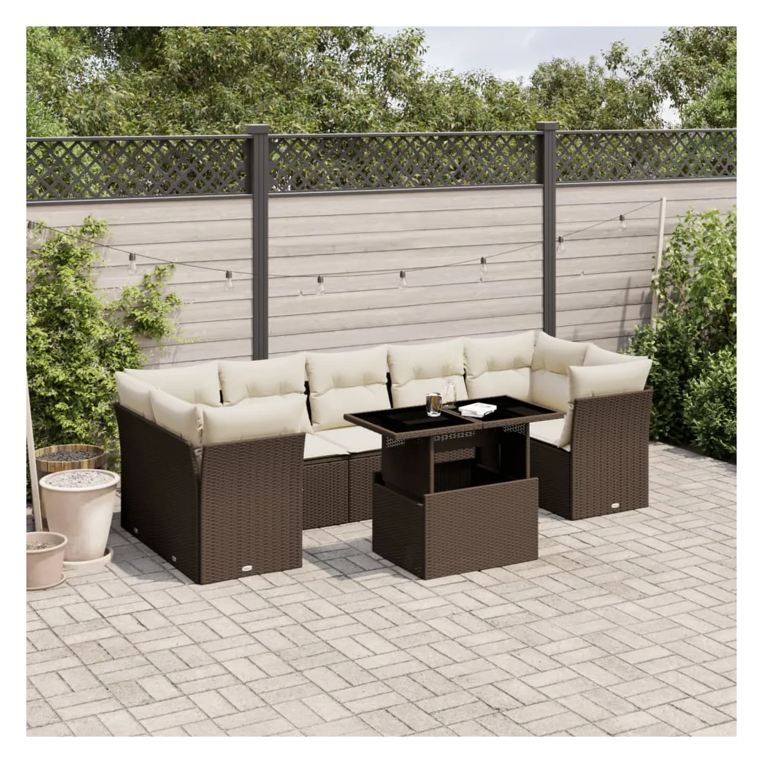 Cet ensemble de canapés de jardin est le complément parfait de votre arrière-cour, terrasse ou patio, offrant un espace confortable et accueillant pour discuter avec la famille et les amis ou simplement se détendre et profiter de l'extérieur. Matériau durable : la résine tressée, également connue sous le nom de poly rotin, est un matériau synthétique solide et nécessitant peu d'entretien qui ressemble au rotin naturel. Il est léger, facile à nettoyer et couramment utilisé pour les meubles d'extérieur en raison de sa durabilité et de ses propriétés de résistance aux intempéries.Dessus de table réglable : le dessus de table peut être soulevé pour rendre la table plus haute, ce qui transforme la table d'extérieur d'une table basse à une table de salle à manger. Elle est parfaite pour recevoir des invités ou prendre des repas à l'extérieur.Expérience d'assise confortable : ce mobilier d'extérieur, doté de coussins épais, offre une expérience d'assise confortable.Housse amovible et lavable : ces coussins de siège sont dotés de housses amovibles pour un lavage et un entretien faciles.Conception modulaire : cet ensemble de meubles d'extérieur a une conception modulaire, ce qui le rend complètement flexible et facile à déplacer, afin que vous puissiez créer un agencement de meubles d'extérieur personnalisé. Bon à savoir :Pour que vos meubles d'extérieur restent beaux, nous vous recommandons de les protéger avec une housse imperméable.