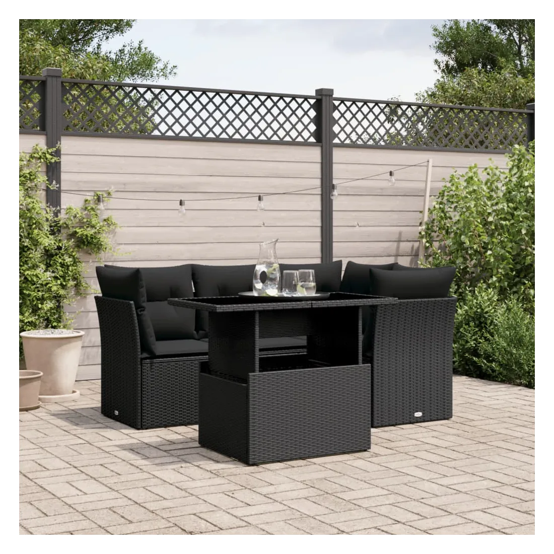 Cet ensemble de canapés de jardin est le complément parfait de votre arrière-cour, terrasse ou patio, offrant un espace confortable et accueillant pour discuter avec la famille et les amis ou simplement se détendre et profiter de l'extérieur. Matériau durable : la résine tressée, également connue sous le nom de poly rotin, est un matériau synthétique solide et nécessitant peu d'entretien qui ressemble au rotin naturel. Il est léger, facile à nettoyer et couramment utilisé pour les meubles d'extérieur en raison de sa durabilité et de ses propriétés de résistance aux intempéries.Dessus de table réglable : le dessus de table peut être soulevé pour rendre la table plus haute, ce qui transforme la table d'extérieur d'une table basse à une table de salle à manger. Elle est parfaite pour recevoir des invités ou prendre des repas à l'extérieur.Expérience d'assise confortable : ce mobilier d'extérieur, doté de coussins épais, offre une expérience d'assise confortable.Housse amovible et lavable : ces coussins de siège sont dotés de housses amovibles pour un lavage et un entretien faciles.Conception modulaire : cet ensemble de meubles d'extérieur a une conception modulaire, ce qui le rend complètement flexible et facile à déplacer, afin que vous puissiez créer un agencement de meubles d'extérieur personnalisé. Bon à savoir :Pour que vos meubles d'extérieur restent beaux, nous vous recommandons de les protéger avec une housse imperméable.