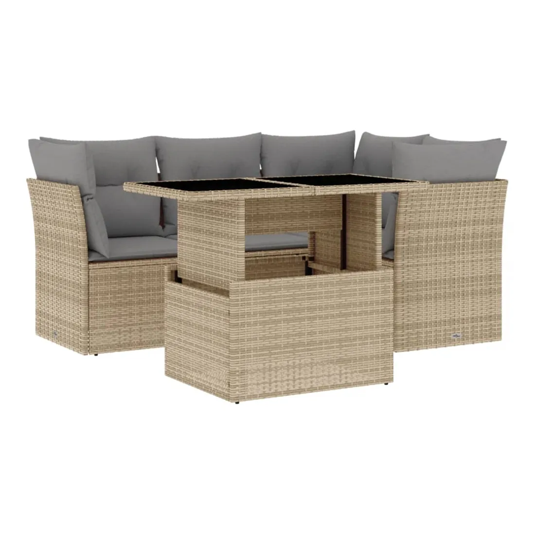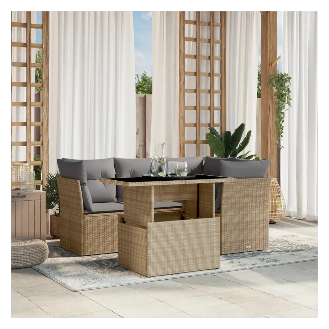Cet ensemble de canapés de jardin est le complément parfait de votre arrière-cour, terrasse ou patio, offrant un espace confortable et accueillant pour discuter avec la famille et les amis ou simplement se détendre et profiter de l'extérieur. Matériau durable : la résine tressée, également connue sous le nom de poly rotin, est un matériau synthétique solide et nécessitant peu d'entretien qui ressemble au rotin naturel. Il est léger, facile à nettoyer et couramment utilisé pour les meubles d'extérieur en raison de sa durabilité et de ses propriétés de résistance aux intempéries.Dessus de table réglable : le dessus de table peut être soulevé pour rendre la table plus haute, ce qui transforme la table d'extérieur d'une table basse à une table de salle à manger. Elle est parfaite pour recevoir des invités ou prendre des repas à l'extérieur.Expérience d'assise confortable : ce mobilier d'extérieur, doté de coussins épais, offre une expérience d'assise confortable.Housse amovible et lavable : ces coussins de siège sont dotés de housses amovibles pour un lavage et un entretien faciles.Conception modulaire : cet ensemble de meubles d'extérieur a une conception modulaire, ce qui le rend complètement flexible et facile à déplacer, afin que vous puissiez créer un agencement de meubles d'extérieur personnalisé. Bon à savoir :Pour que vos meubles d'extérieur restent beaux, nous vous recommandons de les protéger avec une housse imperméable.