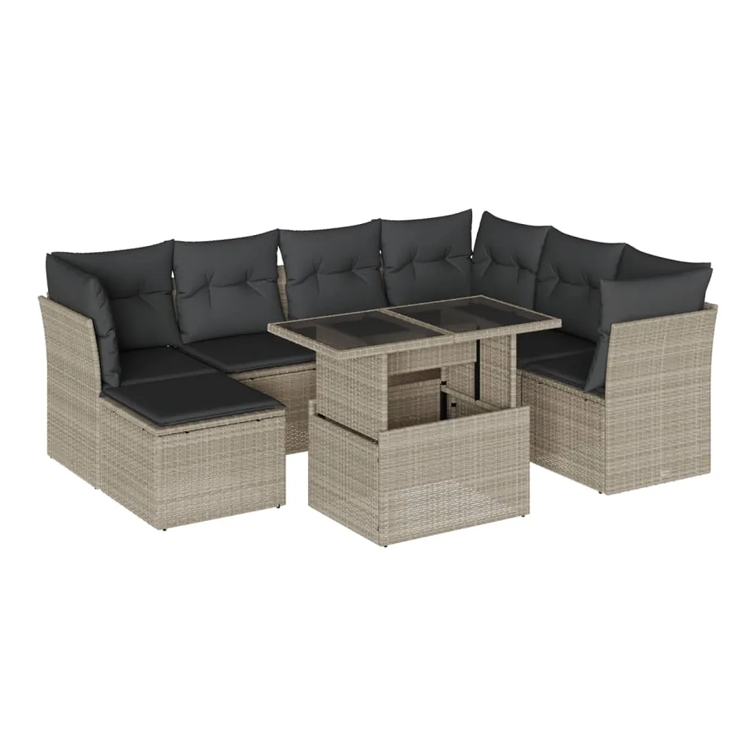 Salon de jardin 8 pcs avec coussins gris clair résine tressée