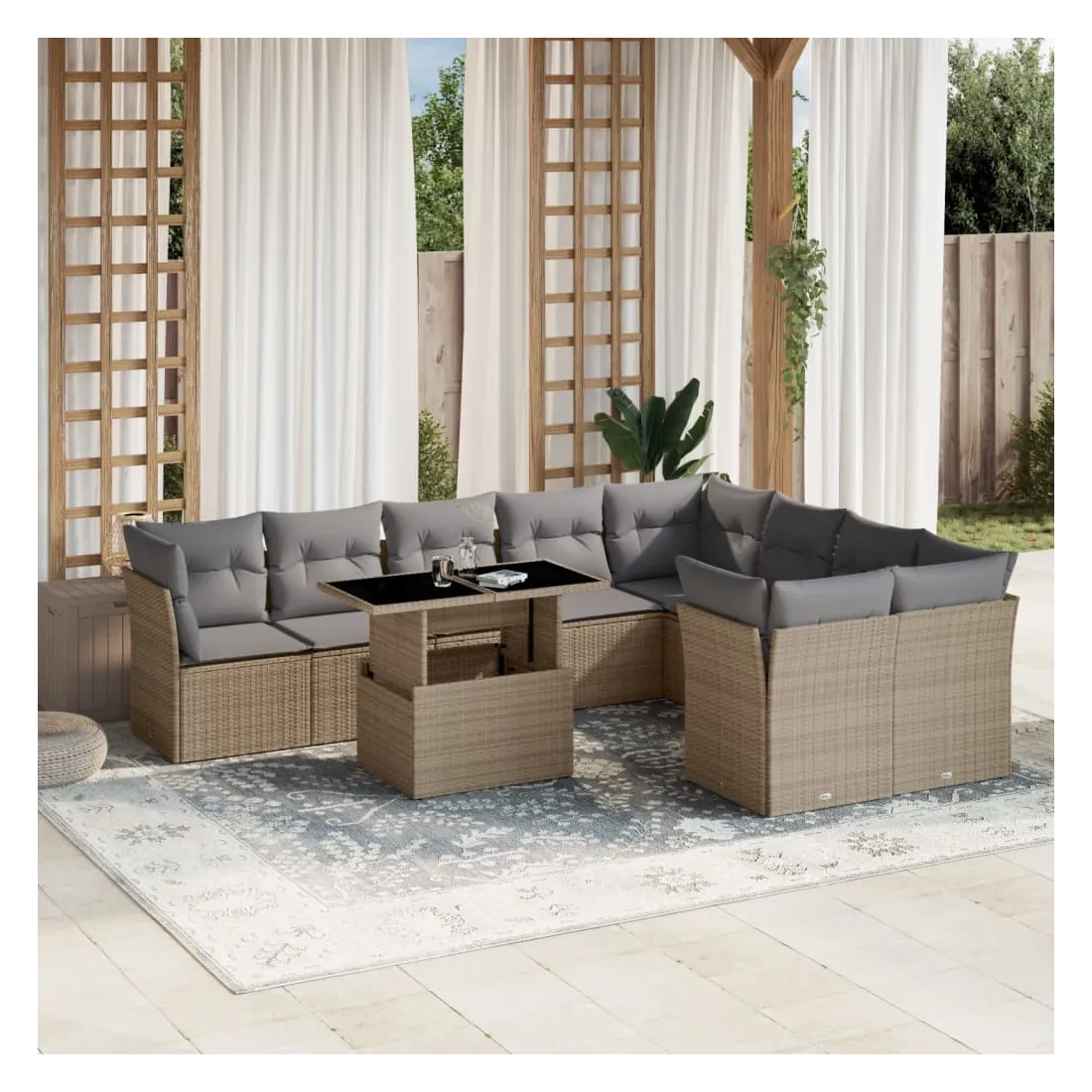 Salon de jardin avec coussins 10 pcs beige résine tressée