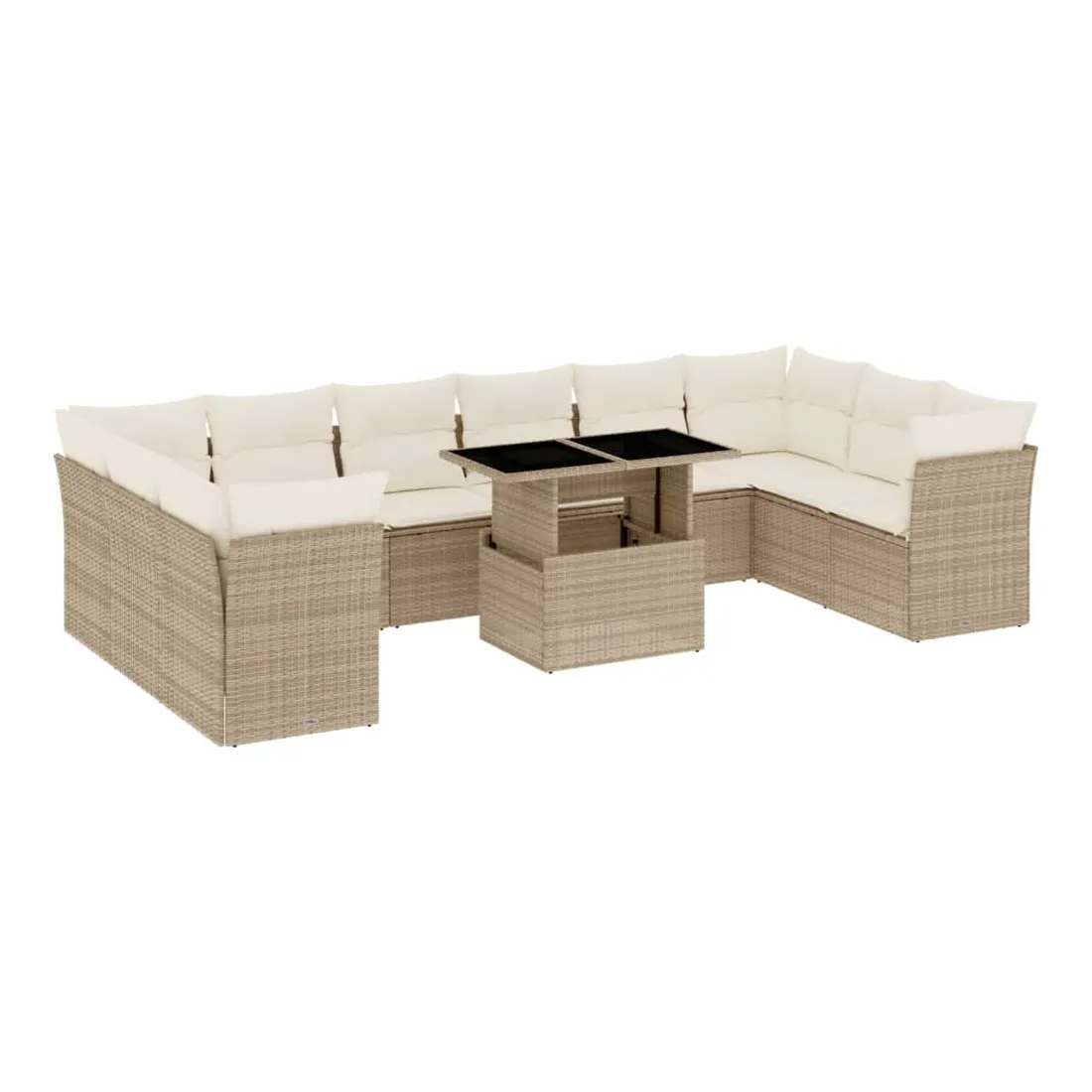 Cet ensemble de canapés de jardin est le complément parfait de votre arrière-cour, terrasse ou patio, offrant un espace confortable et accueillant pour discuter avec la famille et les amis ou simplement se détendre et profiter de l'extérieur. Matériau durable : la résine tressée, également connue sous le nom de poly rotin, est un matériau synthétique solide et nécessitant peu d'entretien qui ressemble au rotin naturel. Il est léger, facile à nettoyer et couramment utilisé pour les meubles d'extérieur en raison de sa durabilité et de ses propriétés de résistance aux intempéries.Dessus de table réglable : le dessus de table peut être soulevé pour rendre la table plus haute, ce qui transforme la table d'extérieur d'une table basse à une table de salle à manger. Elle est parfaite pour recevoir des invités ou prendre des repas à l'extérieur.Expérience d'assise confortable : ce mobilier d'extérieur, doté de coussins épais, offre une expérience d'assise confortable.Housse amovible et lavable : ces coussins de siège sont dotés de housses amovibles pour un lavage et un entretien faciles.Conception modulaire : cet ensemble de meubles d'extérieur a une conception modulaire, ce qui le rend complètement flexible et facile à déplacer, afin que vous puissiez créer un agencement de meubles d'extérieur personnalisé. Bon à savoir :Pour que vos meubles d'extérieur restent beaux, nous vous recommandons de les protéger avec une housse imperméable.