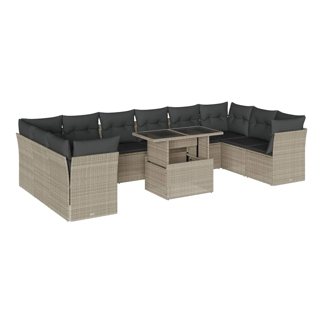 Cet ensemble de canapés de jardin est le complément parfait de votre arrière-cour, terrasse ou patio, offrant un espace confortable et accueillant pour discuter avec la famille et les amis ou simplement se détendre et profiter de l'extérieur. Matériau durable : la résine tressée, également connue sous le nom de poly rotin, est un matériau synthétique solide et nécessitant peu d'entretien qui ressemble au rotin naturel. Elle est légère, facile à nettoyer et couramment utilisée pour les meubles d'extérieur en raison de sa durabilité et de ses propriétés de résistance aux intempéries.Dessus de table réglable : le dessus de table peut être soulevé pour rendre la table plus haute, ce qui transforme la table d'extérieur d'une table basse à une table de salle à manger. Elle est parfaite pour recevoir des invités ou prendre des repas à l'extérieur.Expérience d'assise confortable : ce mobilier d'extérieur, doté de coussins épais, offre une expérience d'assise confortable.Housse amovible et lavable : ces coussins de siège sont dotés de housses amovibles pour un lavage et un entretien faciles.Conception modulaire : cet ensemble de meubles d'extérieur a une conception modulaire, ce qui le rend complètement flexible et facile à déplacer, afin que vous puissiez créer un agencement de meubles d'extérieur personnalisé. Bon à savoir :Pour que vos meubles d'extérieur restent beaux, nous vous recommandons de les protéger avec une housse imperméable.