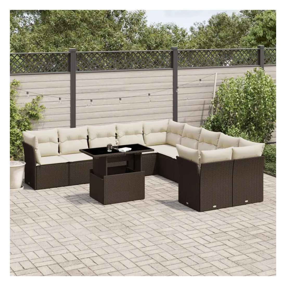 Cet ensemble de canapés de jardin est le complément parfait de votre arrière-cour, terrasse ou patio, offrant un espace confortable et accueillant pour discuter avec la famille et les amis ou simplement se détendre et profiter de l'extérieur. Matériau durable : la résine tressée, également connue sous le nom de poly rotin, est un matériau synthétique solide et nécessitant peu d'entretien qui ressemble au rotin naturel. Il est léger, facile à nettoyer et couramment utilisé pour les meubles d'extérieur en raison de sa durabilité et de ses propriétés de résistance aux intempéries.Dessus de table réglable : le dessus de table peut être soulevé pour rendre la table plus haute, ce qui transforme la table d'extérieur d'une table basse à une table de salle à manger. Elle est parfaite pour recevoir des invités ou prendre des repas à l'extérieur.Expérience d'assise confortable : ce mobilier d'extérieur, doté de coussins épais, offre une expérience d'assise confortable.Housse amovible et lavable : ces coussins de siège sont dotés de housses amovibles pour un lavage et un entretien faciles.Conception modulaire : cet ensemble de meubles d'extérieur a une conception modulaire, ce qui le rend complètement flexible et facile à déplacer, afin que vous puissiez créer un agencement de meubles d'extérieur personnalisé. Bon à savoir :Pour que vos meubles d'extérieur restent beaux, nous vous recommandons de les protéger avec une housse imperméable.