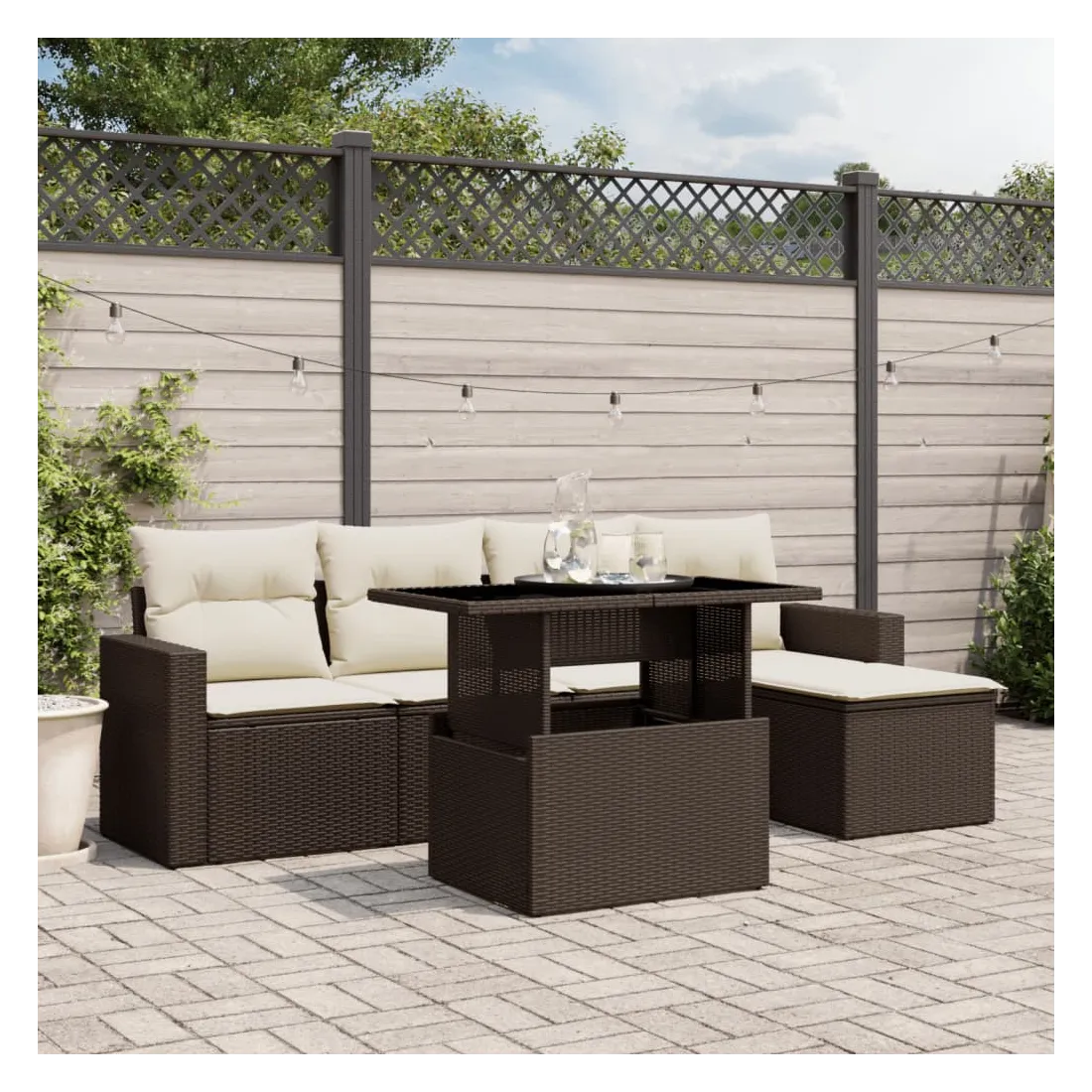 Cet ensemble de canapés de jardin est le complément parfait de votre arrière-cour, terrasse ou patio, offrant un espace confortable et accueillant pour discuter avec la famille et les amis ou simplement se détendre et profiter de l'extérieur. Matériau durable : la résine tressée, également connue sous le nom de poly rotin, est un matériau synthétique solide et nécessitant peu d'entretien qui ressemble au rotin naturel. Il est léger, facile à nettoyer et couramment utilisé pour les meubles d'extérieur en raison de sa durabilité et de ses propriétés de résistance aux intempéries.Dessus de table réglable : le dessus de table peut être soulevé pour rendre la table plus haute, ce qui transforme la table d'extérieur d'une table basse à une table de salle à manger. Elle est parfaite pour recevoir des invités ou prendre des repas à l'extérieur.Expérience d'assise confortable : ce mobilier d'extérieur, doté de coussins épais, offre une expérience d'assise confortable.Housse amovible et lavable : ces coussins de siège sont dotés de housses amovibles pour un lavage et un entretien faciles.Conception modulaire : cet ensemble de meubles d'extérieur a une conception modulaire, ce qui le rend complètement flexible et facile à déplacer, afin que vous puissiez créer un agencement de meubles d'extérieur personnalisé. Bon à savoir :Pour que vos meubles d'extérieur restent beaux, nous vous recommandons de les protéger avec une housse imperméable.