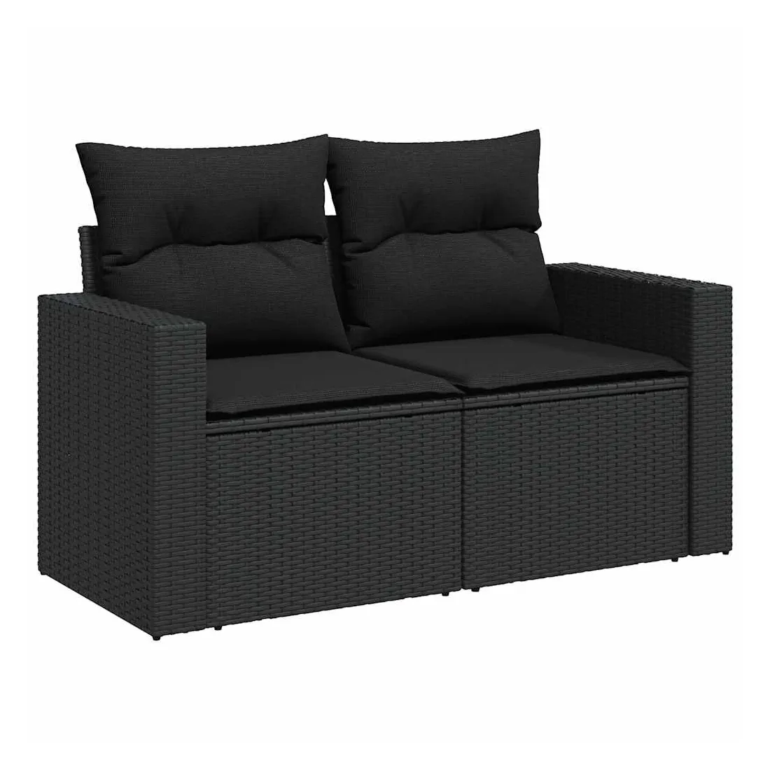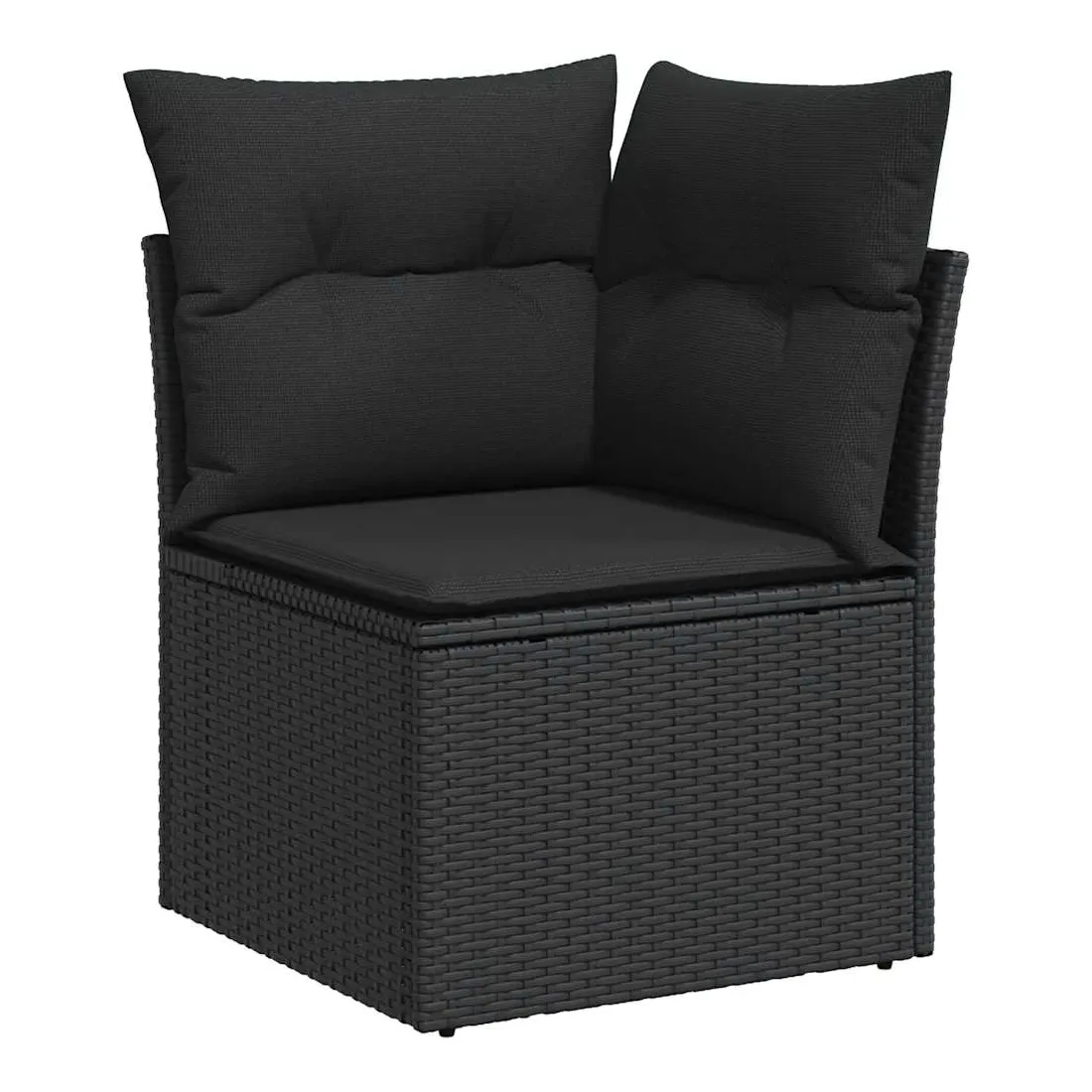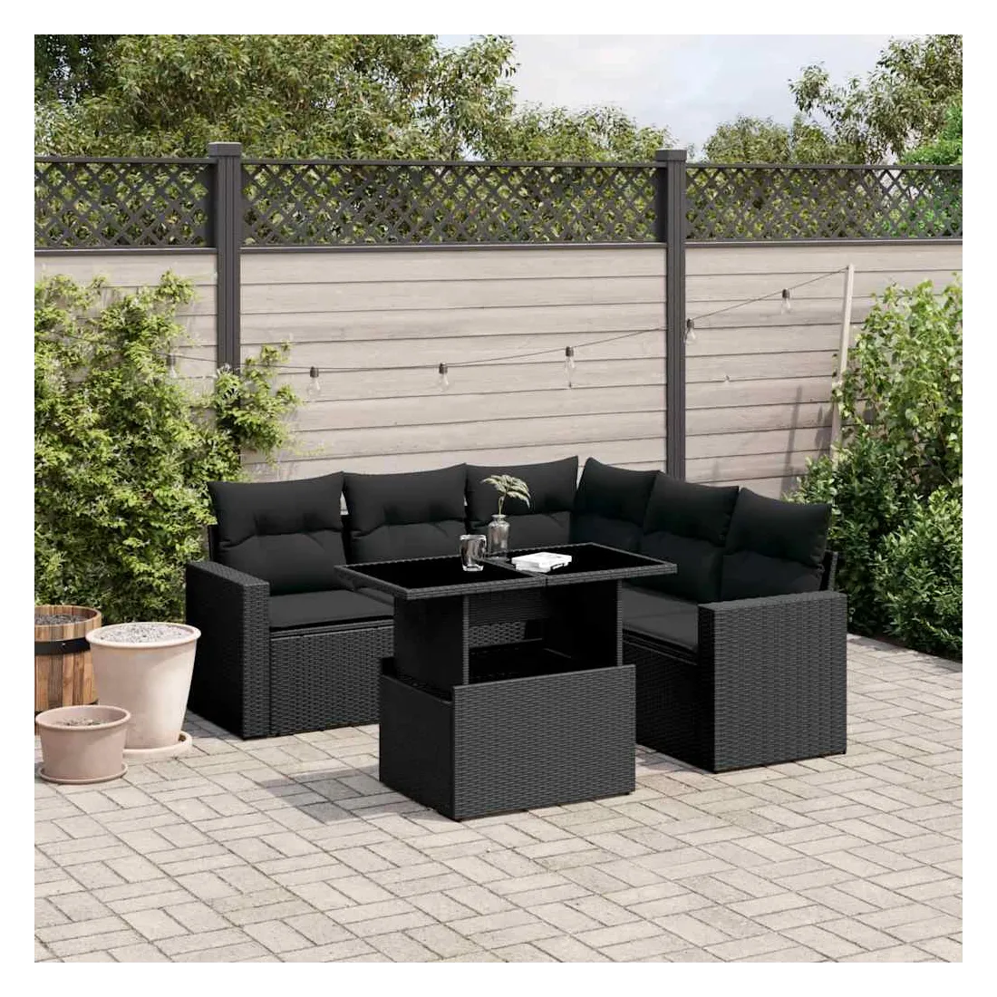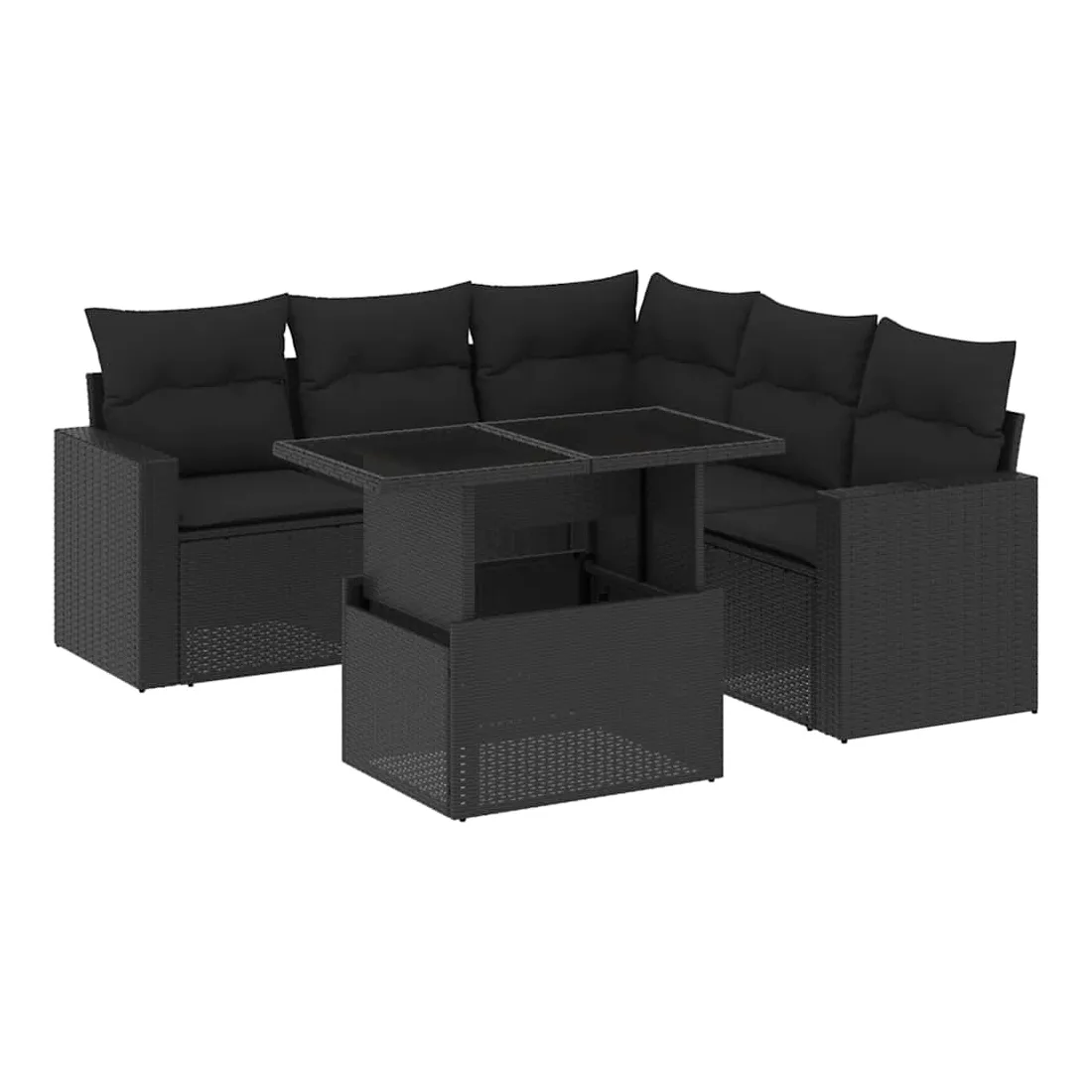 Salon de jardin 6 pcs avec coussins noir résine tressée