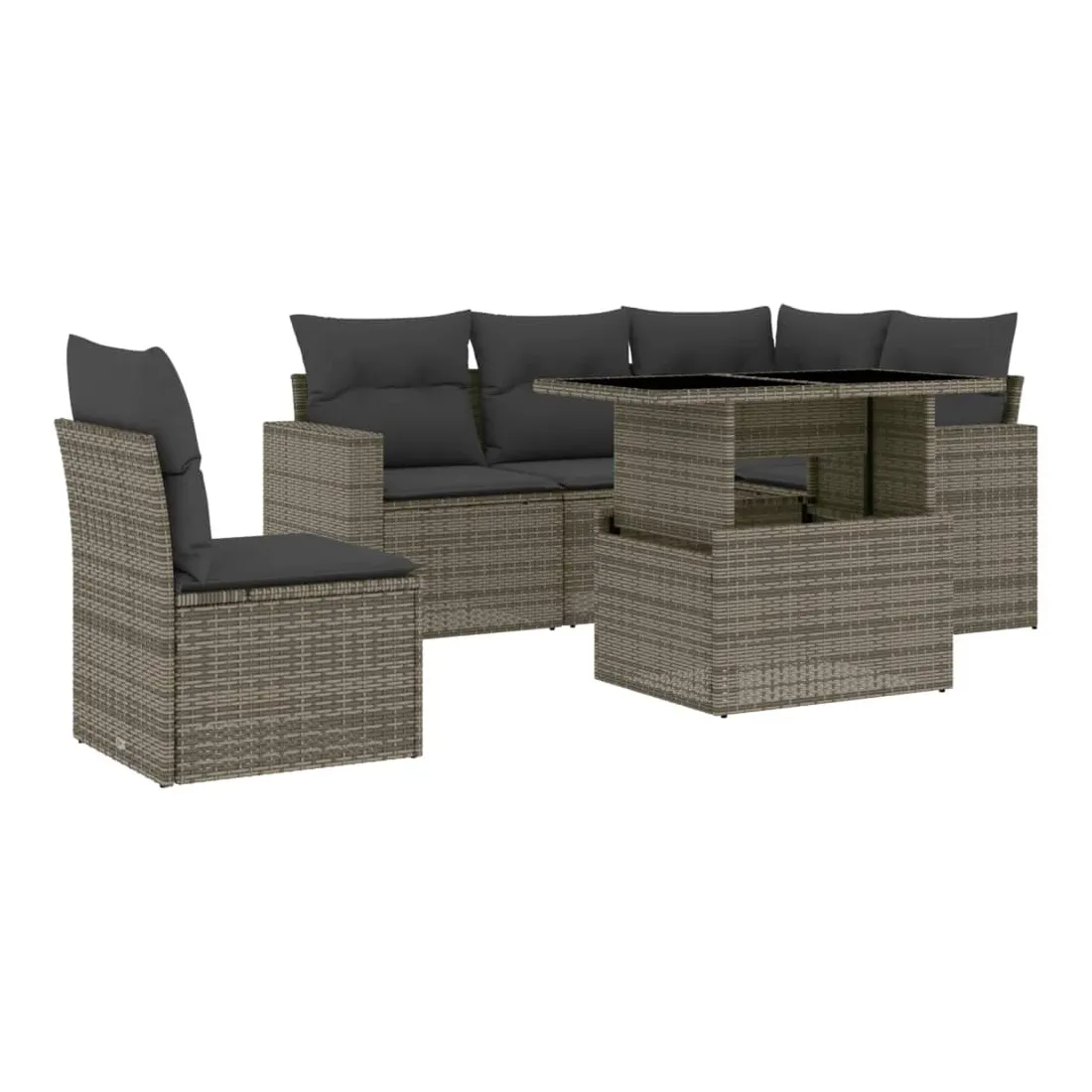 Salon de jardin 6 pcs avec coussins gris résine tressée