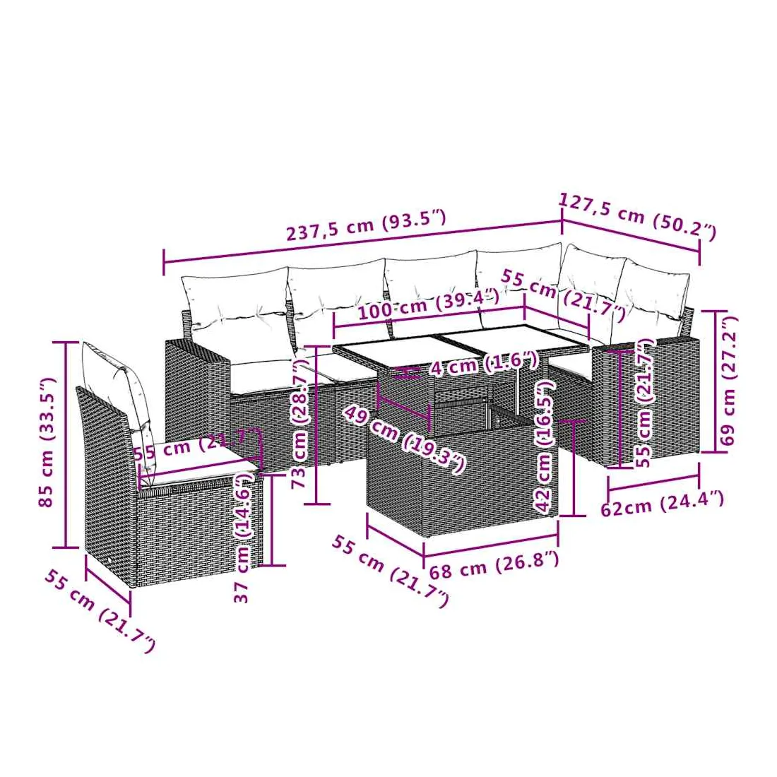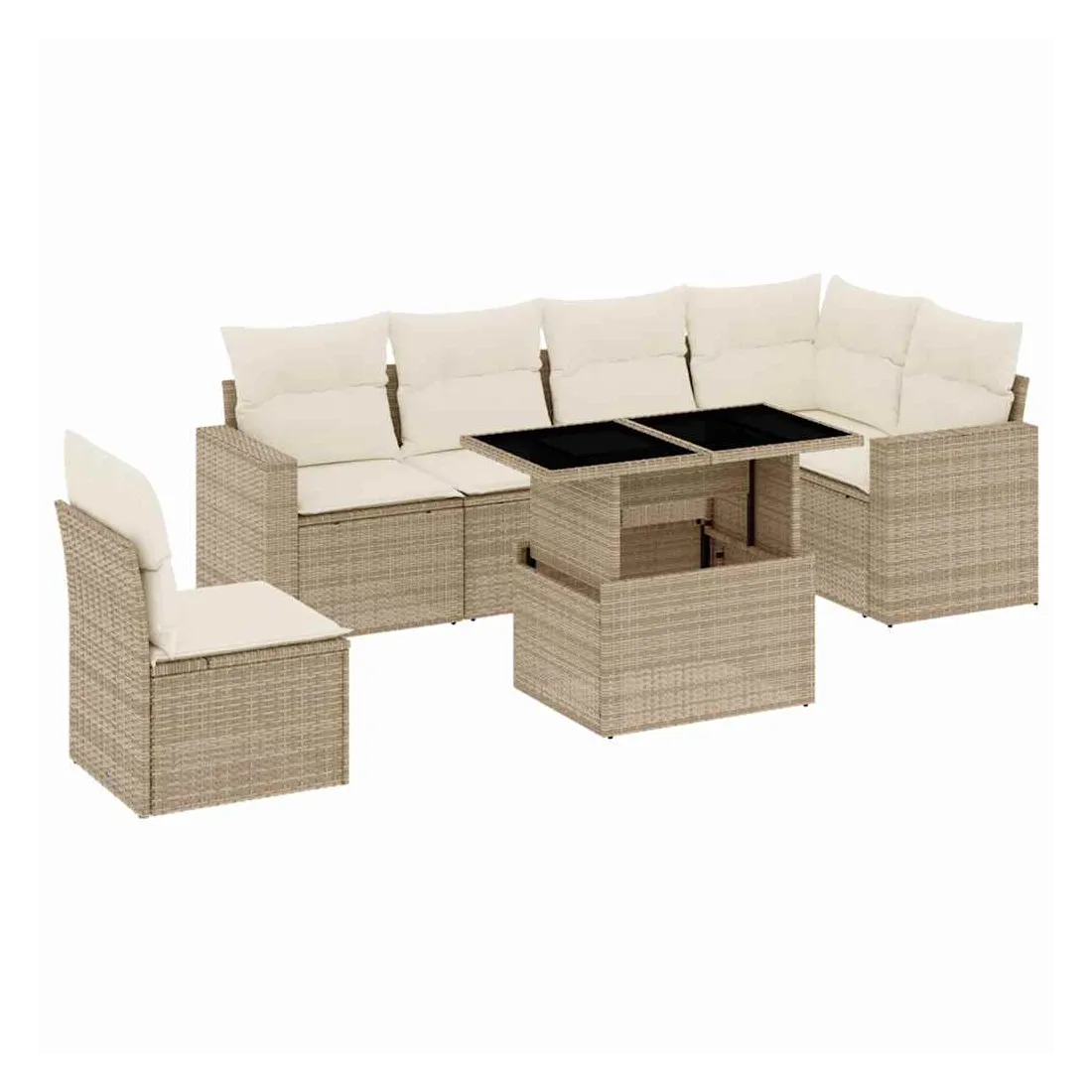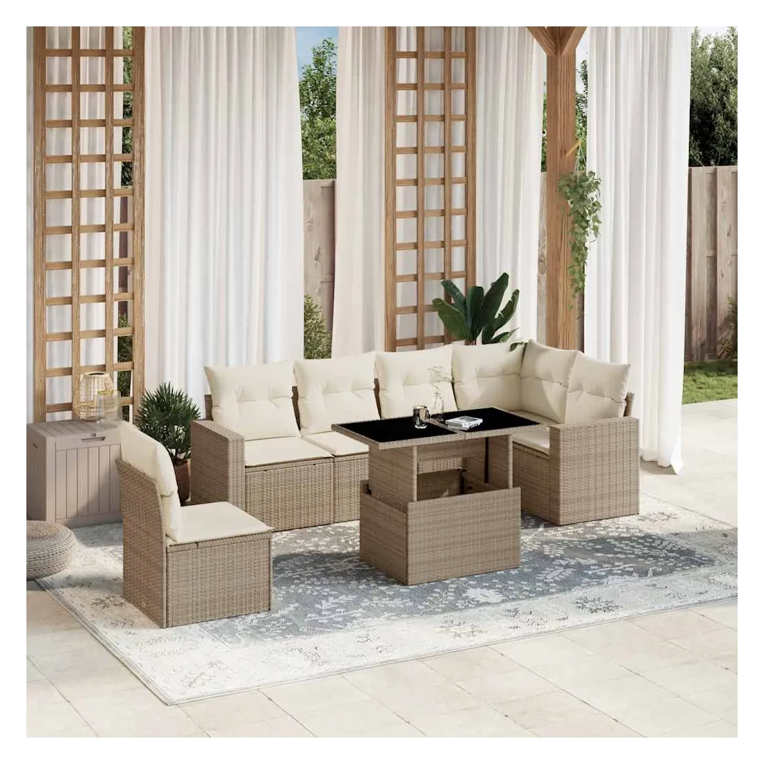 Salon de jardin avec coussins 7 pcs beige résine tressée