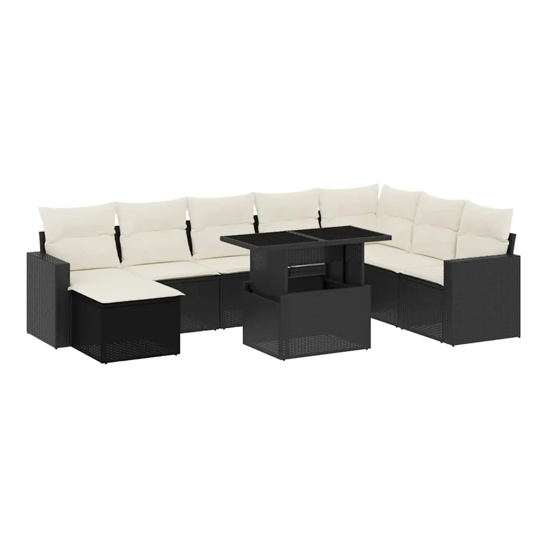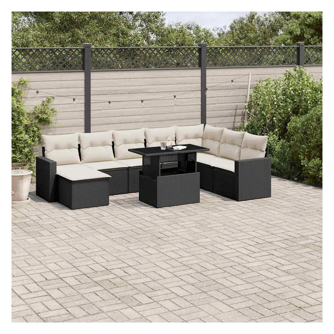 Cet ensemble de canapés de jardin est le complément parfait de votre arrière-cour, terrasse ou patio, offrant un espace confortable et accueillant pour discuter avec la famille et les amis ou simplement se détendre et profiter de l'extérieur. Matériau durable : la résine tressée, également connue sous le nom de poly rotin, est un matériau synthétique solide et nécessitant peu d'entretien qui ressemble au rotin naturel. Il est léger, facile à nettoyer et couramment utilisé pour les meubles d'extérieur en raison de sa durabilité et de ses propriétés de résistance aux intempéries.Dessus de table réglable : le dessus de table peut être soulevé pour rendre la table plus haute, ce qui transforme la table d'extérieur d'une table basse à une table de salle à manger. Elle est parfaite pour recevoir des invités ou prendre des repas à l'extérieur.Expérience d'assise confortable : ce mobilier d'extérieur, doté de coussins épais, offre une expérience d'assise confortable.Housse amovible et lavable : ces coussins de siège sont dotés de housses amovibles pour un lavage et un entretien faciles.Conception modulaire : cet ensemble de meubles d'extérieur a une conception modulaire, ce qui le rend complètement flexible et facile à déplacer, afin que vous puissiez créer un agencement de meubles d'extérieur personnalisé. Bon à savoir :Pour que vos meubles d'extérieur restent beaux, nous vous recommandons de les protéger avec une housse imperméable.