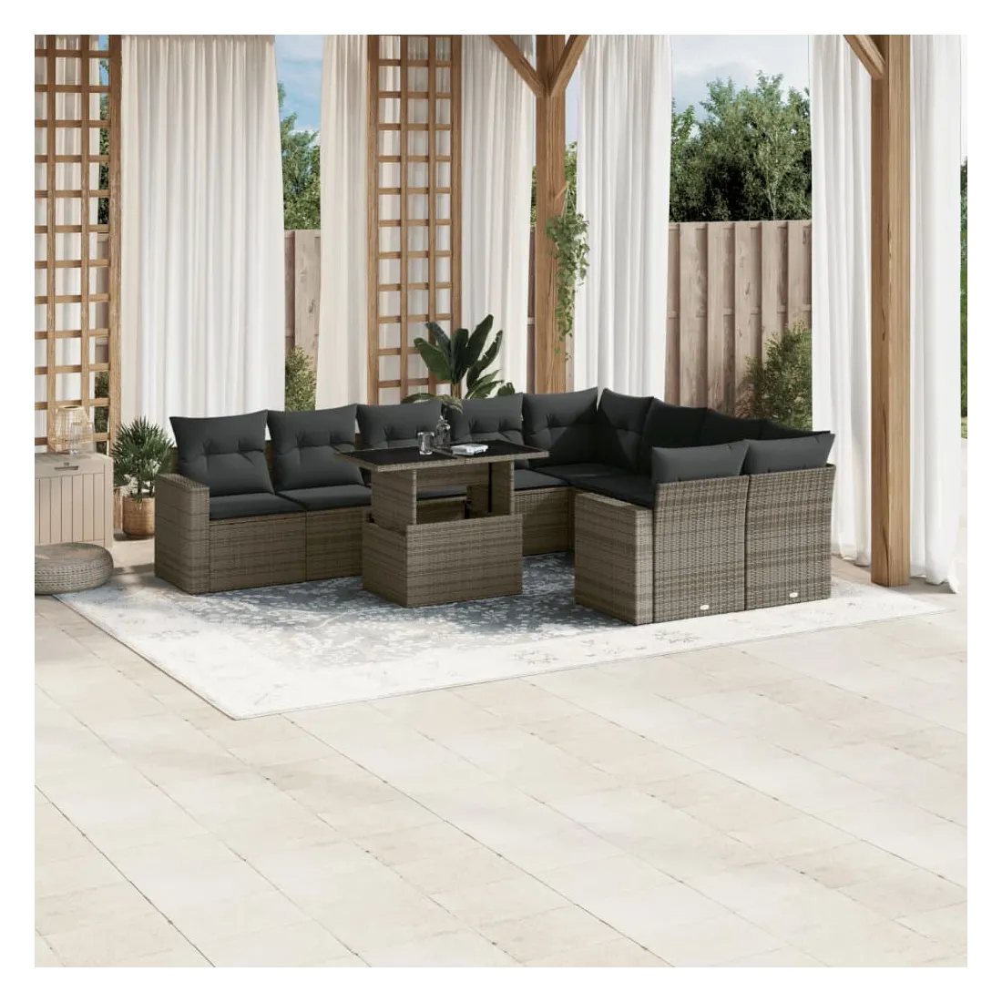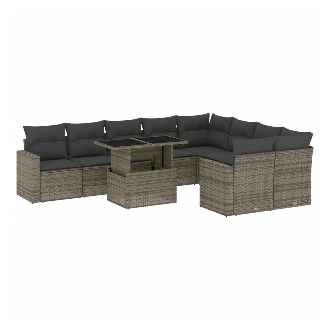 Salon de jardin avec coussins 10 pcs gris résine tressée