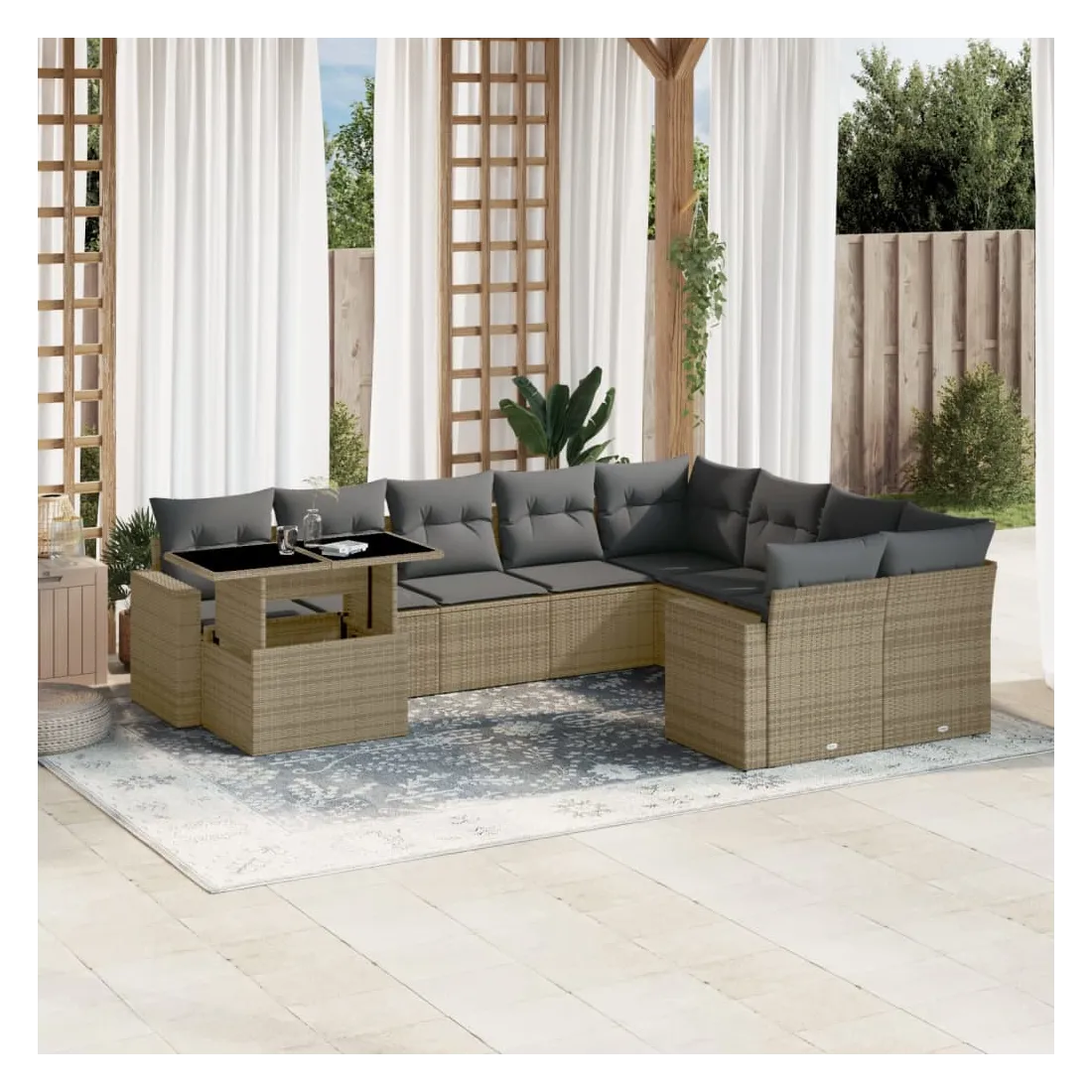 Cet ensemble de canapés de jardin est le complément parfait de votre arrière-cour, terrasse ou patio, offrant un espace confortable et accueillant pour discuter avec la famille et les amis ou simplement se détendre et profiter de l'extérieur. Matériau durable : la résine tressée, également connue sous le nom de poly rotin, est un matériau synthétique solide et nécessitant peu d'entretien qui ressemble au rotin naturel. Il est léger, facile à nettoyer et couramment utilisé pour les meubles d'extérieur en raison de sa durabilité et de ses propriétés de résistance aux intempéries.Dessus de table réglable : le dessus de table peut être soulevé pour rendre la table plus haute, ce qui transforme la table d'extérieur d'une table basse à une table de salle à manger. Elle est parfaite pour recevoir des invités ou prendre des repas à l'extérieur.Expérience d'assise confortable : ce mobilier d'extérieur, doté de coussins épais, offre une expérience d'assise confortable.Housse amovible et lavable : ces coussins de siège sont dotés de housses amovibles pour un lavage et un entretien faciles.Conception modulaire : cet ensemble de meubles d'extérieur a une conception modulaire, ce qui le rend complètement flexible et facile à déplacer, afin que vous puissiez créer un agencement de meubles d'extérieur personnalisé. Bon à savoir :Pour que vos meubles d'extérieur restent beaux, nous vous recommandons de les protéger avec une housse imperméable.