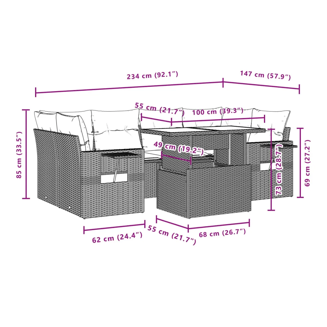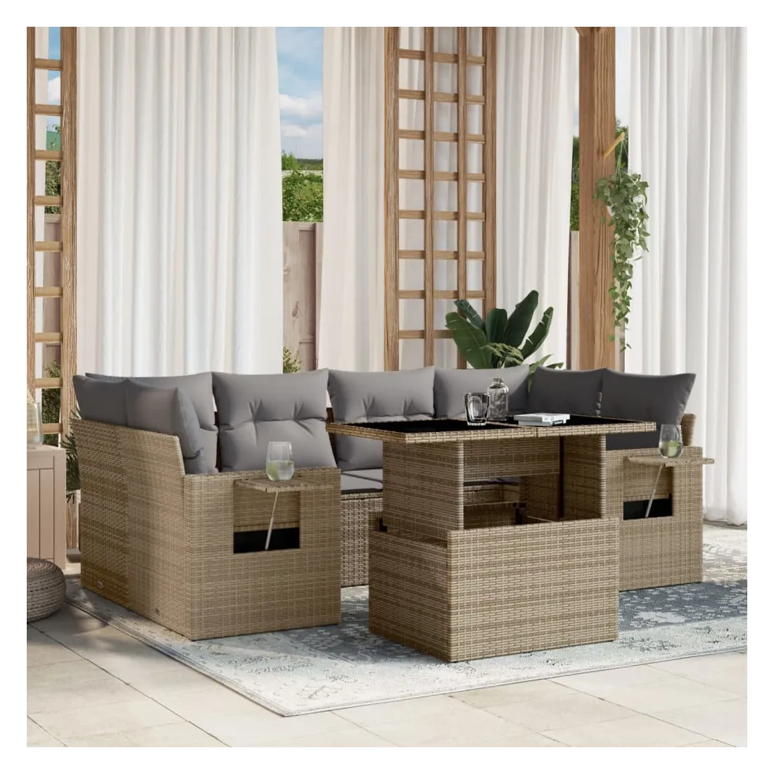 Cet ensemble de canapés de jardin est le complément parfait de votre arrière-cour, terrasse ou patio, offrant un espace confortable et accueillant pour discuter avec la famille et les amis ou simplement se détendre et profiter de l'extérieur. Matériau durable : la résine tressée, également connue sous le nom de poly rotin, est un matériau synthétique solide et nécessitant peu d'entretien qui ressemble au rotin naturel. Il est léger, facile à nettoyer et couramment utilisé pour les meubles d'extérieur en raison de sa durabilité et de ses propriétés de résistance aux intempéries.Dessus de table réglable : le dessus de table peut être soulevé pour rendre la table plus haute, ce qui transforme la table d'extérieur d'une table basse à une table de salle à manger. Elle est parfaite pour recevoir des invités ou prendre des repas à l'extérieur.Table d'appoint pratique : ce mobilier d'extérieur comprend des tables d'appoint pliables avec un ressort à gaz sur les accoudoirs, offrant des endroits pratiques pour garder vos essentiels à portée de main. Expérience d'assise confortable : ce mobilier d'extérieur, doté de coussins épais, offre une expérience d'assise confortable.Conception modulaire : cet ensemble de meubles d'extérieur a une conception modulaire, ce qui le rend complètement flexible et facile à déplacer, afin que vous puissiez créer un agencement de meubles d'extérieur personnalisé. Bon à savoir :Pour que vos meubles d'extérieur restent beaux, nous vous recommandons de les protéger avec une housse imperméable.
