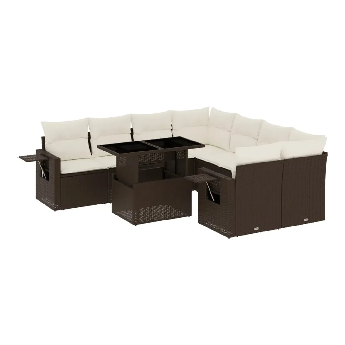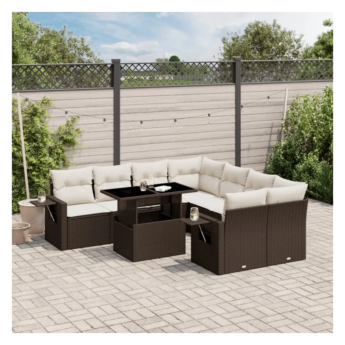 Cet ensemble de canapés de jardin est le complément parfait de votre arrière-cour, terrasse ou patio, offrant un espace confortable et accueillant pour discuter avec la famille et les amis ou simplement se détendre et profiter de l'extérieur. Matériau durable : la résine tressée, également connue sous le nom de poly rotin, est un matériau synthétique solide et nécessitant peu d'entretien qui ressemble au rotin naturel. Il est léger, facile à nettoyer et couramment utilisé pour les meubles d'extérieur en raison de sa durabilité et de ses propriétés de résistance aux intempéries.Dessus de table réglable : le dessus de table peut être soulevé pour rendre la table plus haute, ce qui transforme la table d'extérieur d'une table basse à une table de salle à manger. Elle est parfaite pour recevoir des invités ou prendre des repas à l'extérieur.Table d'appoint pratique : ce mobilier d'extérieur comprend des tables d'appoint pliables avec un ressort à gaz sur les accoudoirs, offrant des endroits pratiques pour garder vos essentiels à portée de main. Expérience d'assise confortable : ce mobilier d'extérieur, doté de coussins épais, offre une expérience d'assise confortable.Conception modulaire : cet ensemble de meubles d'extérieur a une conception modulaire, ce qui le rend complètement flexible et facile à déplacer, afin que vous puissiez créer un agencement de meubles d'extérieur personnalisé. Bon à savoir :Pour que vos meubles d'extérieur restent beaux, nous vous recommandons de les protéger avec une housse imperméable.