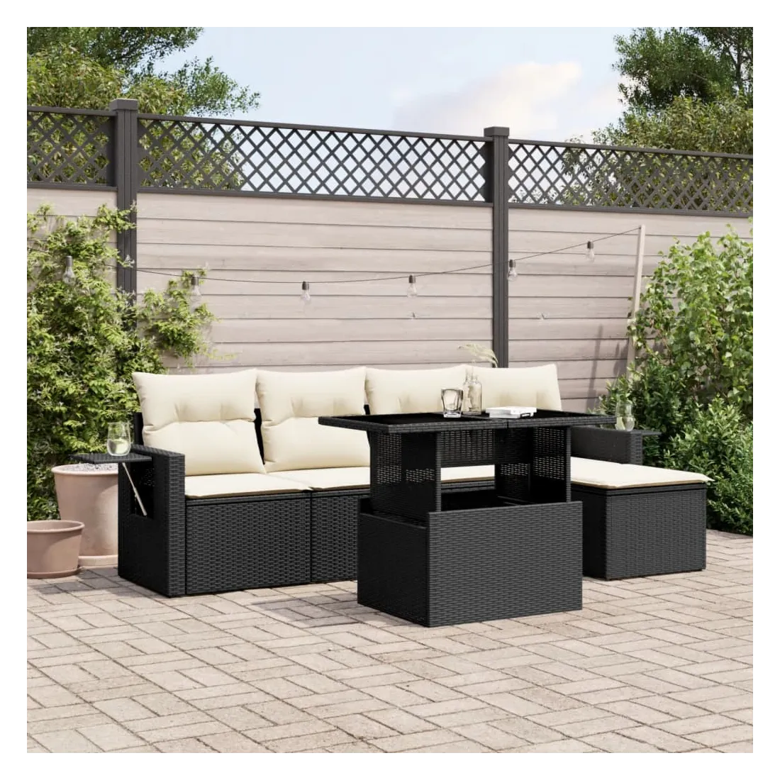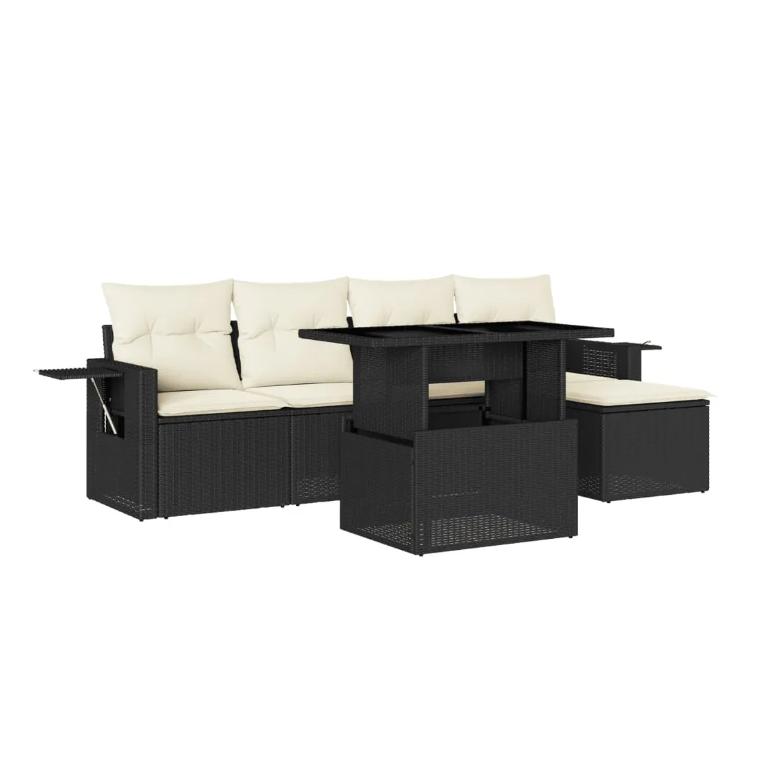 Cet ensemble de canapés de jardin est le complément parfait de votre arrière-cour, terrasse ou patio, offrant un espace confortable et accueillant pour discuter avec la famille et les amis ou simplement se détendre et profiter de l'extérieur. Matériau durable : la résine tressée, également connue sous le nom de poly rotin, est un matériau synthétique solide et nécessitant peu d'entretien qui ressemble au rotin naturel. Il est léger, facile à nettoyer et couramment utilisé pour les meubles d'extérieur en raison de sa durabilité et de ses propriétés de résistance aux intempéries.Dessus de table réglable : le dessus de table peut être soulevé pour rendre la table plus haute, ce qui transforme la table d'extérieur d'une table basse à une table de salle à manger. Elle est parfaite pour recevoir des invités ou prendre des repas à l'extérieur.Table d'appoint pratique : ce mobilier d'extérieur comprend des tables d'appoint pliables avec un ressort à gaz sur les accoudoirs, offrant des endroits pratiques pour garder vos essentiels à portée de main. Expérience d'assise confortable : ce mobilier d'extérieur, doté de coussins épais, offre une expérience d'assise confortable.Conception modulaire : cet ensemble de meubles d'extérieur a une conception modulaire, ce qui le rend complètement flexible et facile à déplacer, afin que vous puissiez créer un agencement de meubles d'extérieur personnalisé. Bon à savoir :Pour que vos meubles d'extérieur restent beaux, nous vous recommandons de les protéger avec une housse imperméable.