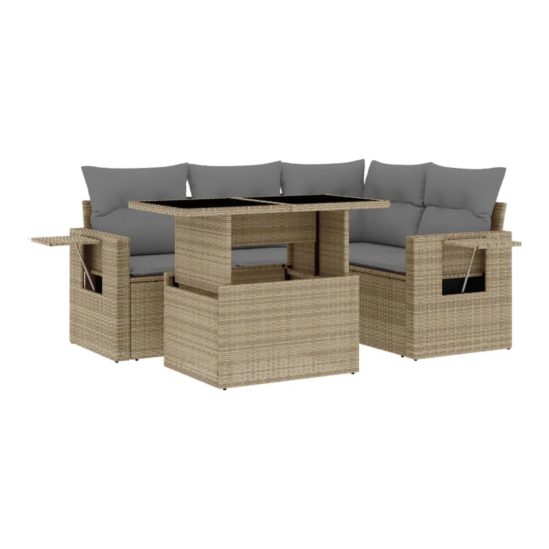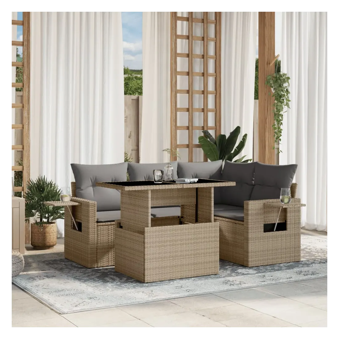 Cet ensemble de canapés de jardin est le complément parfait de votre arrière-cour, terrasse ou patio, offrant un espace confortable et accueillant pour discuter avec la famille et les amis ou simplement se détendre et profiter de l'extérieur. Matériau durable : la résine tressée, également connue sous le nom de poly rotin, est un matériau synthétique solide et nécessitant peu d'entretien qui ressemble au rotin naturel. Il est léger, facile à nettoyer et couramment utilisé pour les meubles d'extérieur en raison de sa durabilité et de ses propriétés de résistance aux intempéries.Dessus de table réglable : le dessus de table peut être soulevé pour rendre la table plus haute, ce qui transforme la table d'extérieur d'une table basse à une table de salle à manger. Elle est parfaite pour recevoir des invités ou prendre des repas à l'extérieur.Table d'appoint pratique : ce mobilier d'extérieur comprend des tables d'appoint pliables avec un ressort à gaz sur les accoudoirs, offrant des endroits pratiques pour garder vos essentiels à portée de main. Expérience d'assise confortable : ce mobilier d'extérieur, doté de coussins épais, offre une expérience d'assise confortable.Conception modulaire : cet ensemble de meubles d'extérieur a une conception modulaire, ce qui le rend complètement flexible et facile à déplacer, afin que vous puissiez créer un agencement de meubles d'extérieur personnalisé. Bon à savoir :Pour que vos meubles d'extérieur restent beaux, nous vous recommandons de les protéger avec une housse imperméable.