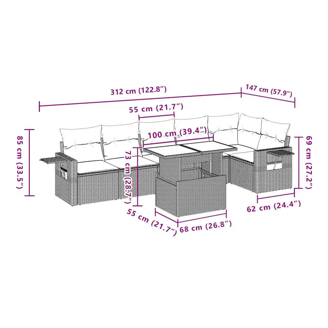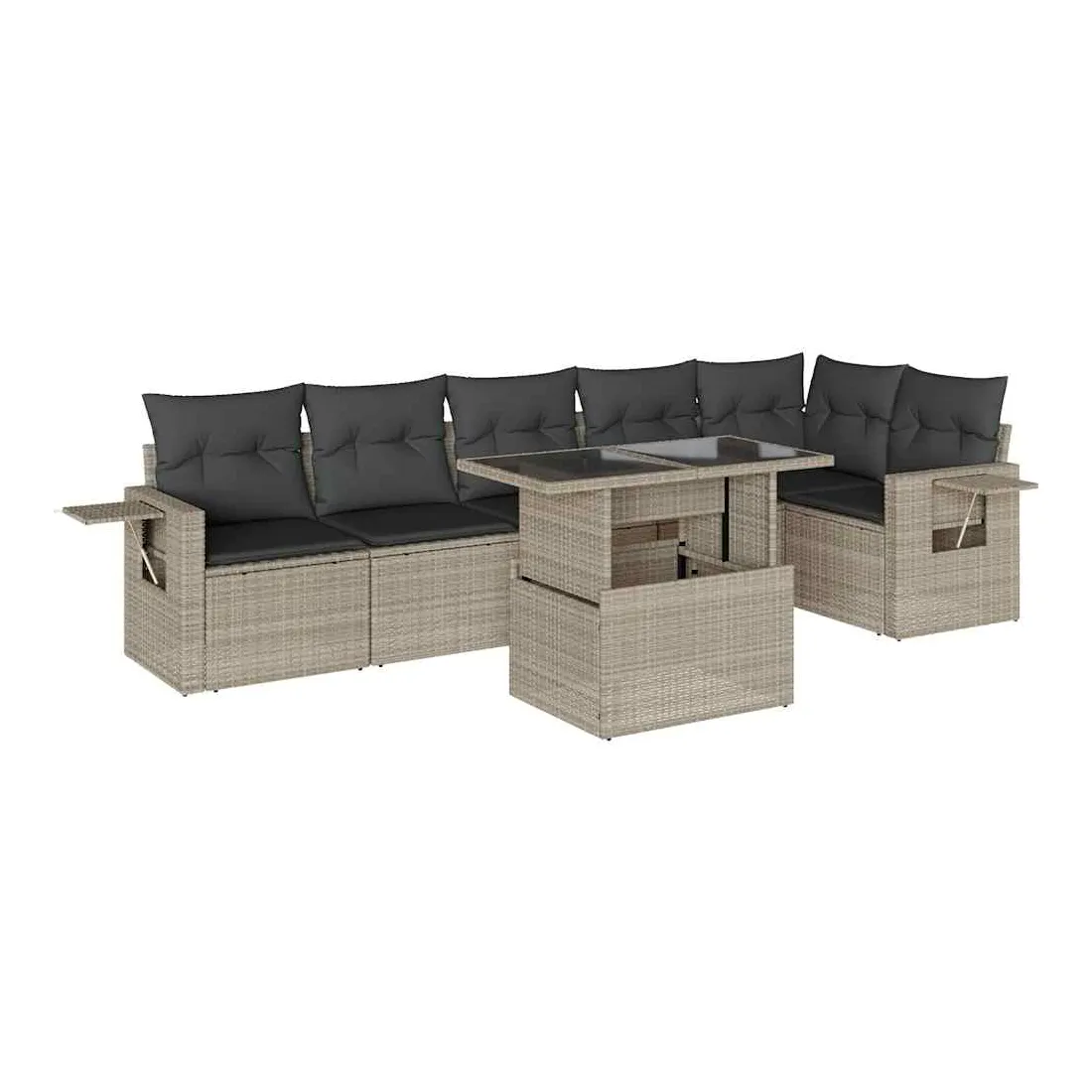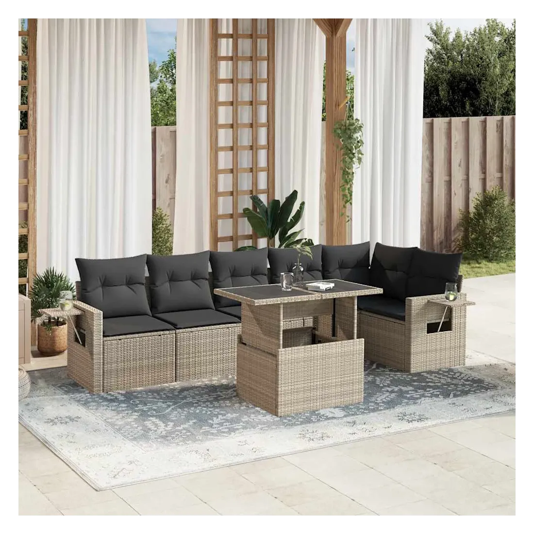 Cet ensemble de canapés de jardin est le complément parfait de votre arrière-cour, terrasse ou patio, offrant un espace confortable et accueillant pour discuter avec la famille et les amis ou simplement se détendre et profiter de l'extérieur. Matériau durable : la résine tressée, également connue sous le nom de poly rotin, est un matériau synthétique solide et nécessitant peu d'entretien qui ressemble au rotin naturel. Elle est légère, facile à nettoyer et couramment utilisée pour les meubles d'extérieur en raison de sa durabilité et de ses propriétés de résistance aux intempéries.Dessus de table réglable : le dessus de table peut être soulevé pour rendre la table plus haute, ce qui transforme la table d'extérieur d'une table basse à une table de salle à manger. Elle est parfaite pour recevoir des invités ou prendre des repas à l'extérieur.Table d'appoint pratique : ce mobilier d'extérieur comprend des tables d'appoint pliables avec un ressort à gaz sur les accoudoirs, offrant des endroits pratiques pour garder vos essentiels à portée de main. Expérience d'assise confortable : ce mobilier d'extérieur, doté de coussins épais, offre une expérience d'assise confortable.Conception modulaire : cet ensemble de meubles d'extérieur a une conception modulaire, ce qui le rend complètement flexible et facile à déplacer, afin que vous puissiez créer un agencement de meubles d'extérieur personnalisé. Bon à savoir :Pour que vos meubles d'extérieur restent beaux, nous vous recommandons de les protéger avec une housse imperméable.