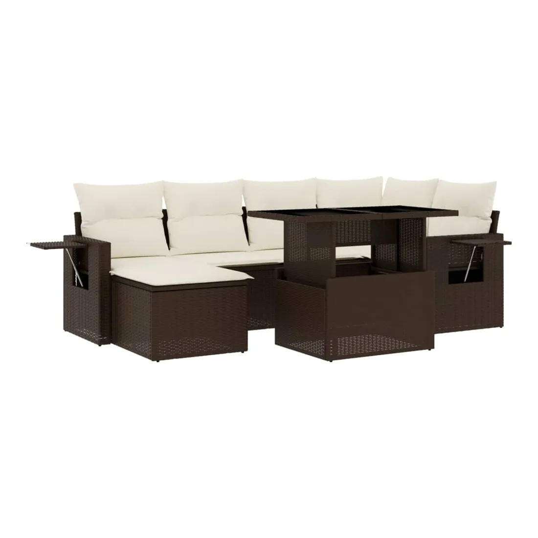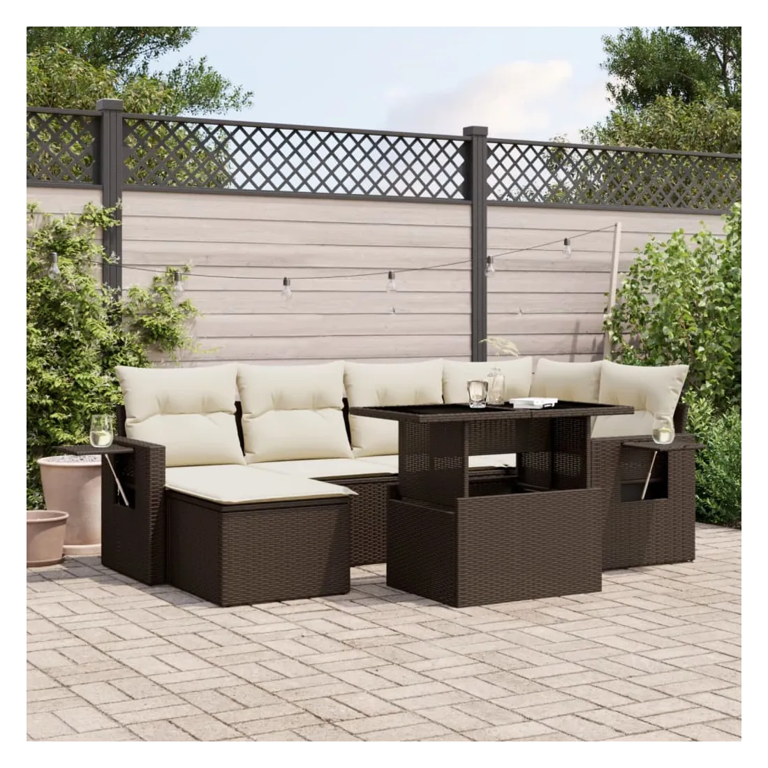 Cet ensemble de canapés de jardin est le complément parfait de votre arrière-cour, terrasse ou patio, offrant un espace confortable et accueillant pour discuter avec la famille et les amis ou simplement se détendre et profiter de l'extérieur. Matériau durable : la résine tressée, également connue sous le nom de poly rotin, est un matériau synthétique solide et nécessitant peu d'entretien qui ressemble au rotin naturel. Il est léger, facile à nettoyer et couramment utilisé pour les meubles d'extérieur en raison de sa durabilité et de ses propriétés de résistance aux intempéries.Dessus de table réglable : le dessus de table peut être soulevé pour rendre la table plus haute, ce qui transforme la table d'extérieur d'une table basse à une table de salle à manger. Elle est parfaite pour recevoir des invités ou prendre des repas à l'extérieur.Table d'appoint pratique : ce mobilier d'extérieur comprend des tables d'appoint pliables avec un ressort à gaz sur les accoudoirs, offrant des endroits pratiques pour garder vos essentiels à portée de main. Expérience d'assise confortable : ce mobilier d'extérieur, doté de coussins épais, offre une expérience d'assise confortable.Conception modulaire : cet ensemble de meubles d'extérieur a une conception modulaire, ce qui le rend complètement flexible et facile à déplacer, afin que vous puissiez créer un agencement de meubles d'extérieur personnalisé. Bon à savoir :Pour que vos meubles d'extérieur restent beaux, nous vous recommandons de les protéger avec une housse imperméable.