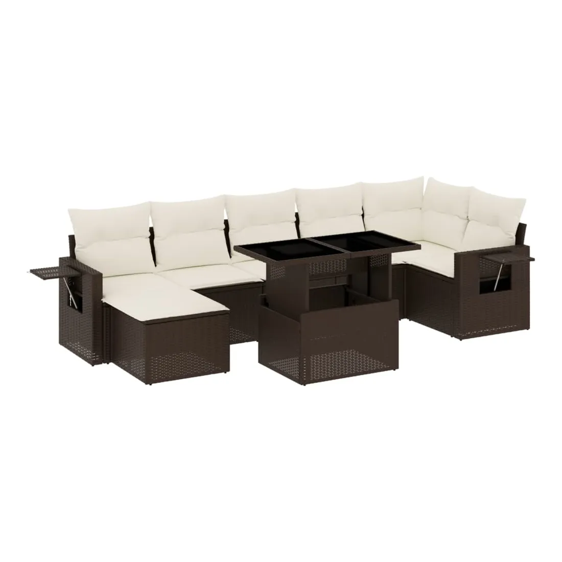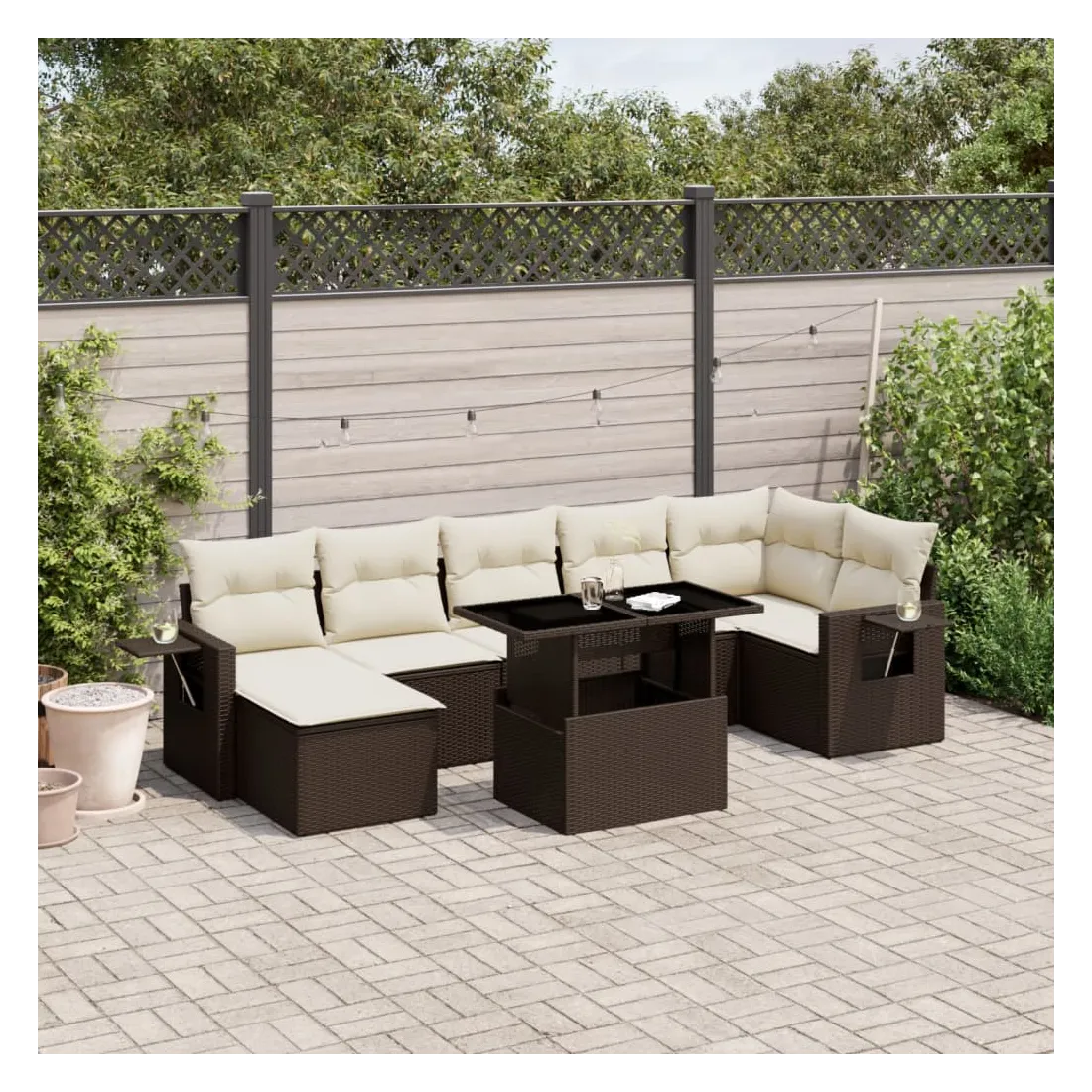 Salon de jardin 8 pcs avec coussins marron résine tressée