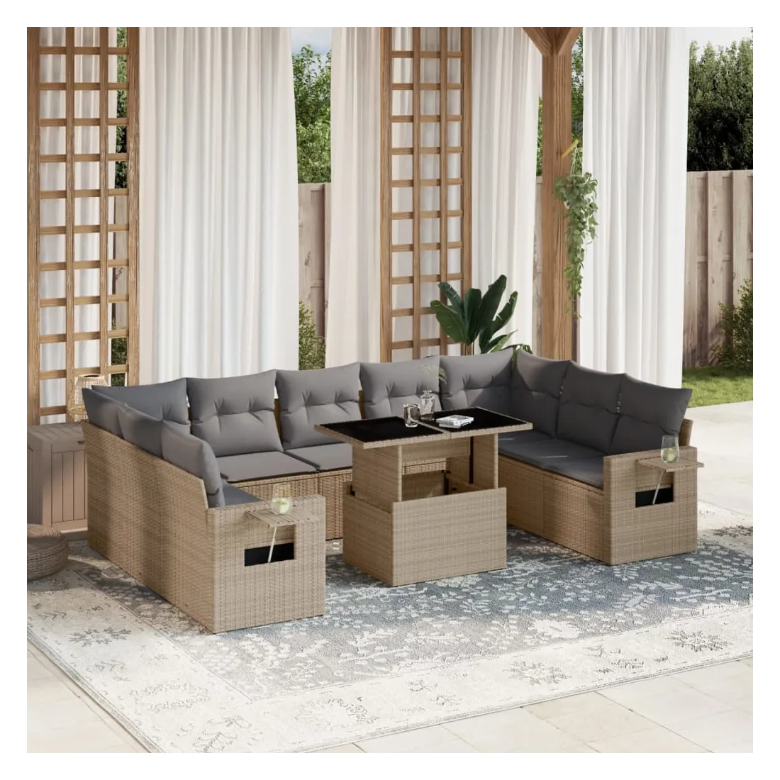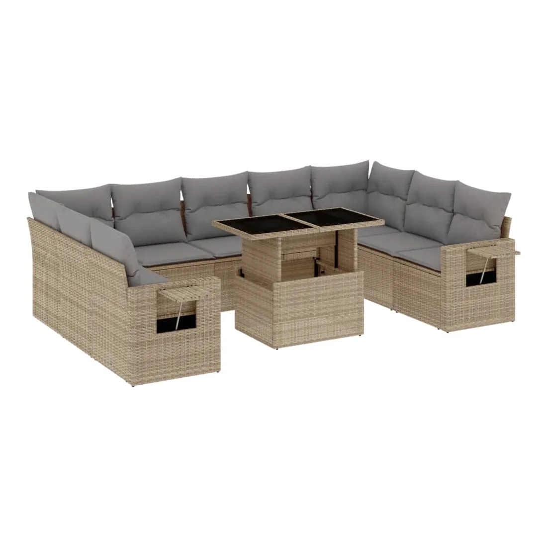 Salon de jardin avec coussins 10 pcs beige résine tressée