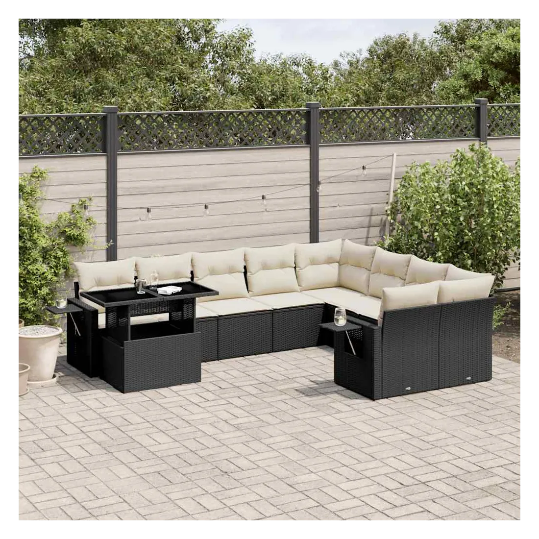 Cet ensemble de canapés de jardin est le complément parfait de votre arrière-cour, terrasse ou patio, offrant un espace confortable et accueillant pour discuter avec la famille et les amis ou simplement se détendre et profiter de l'extérieur. Matériau durable : la résine tressée, également connue sous le nom de poly rotin, est un matériau synthétique solide et nécessitant peu d'entretien qui ressemble au rotin naturel. Il est léger, facile à nettoyer et couramment utilisé pour les meubles d'extérieur en raison de sa durabilité et de ses propriétés de résistance aux intempéries.Dessus de table réglable : le dessus de table peut être soulevé pour rendre la table plus haute, ce qui transforme la table d'extérieur d'une table basse à une table de salle à manger. Elle est parfaite pour recevoir des invités ou prendre des repas à l'extérieur.Table d'appoint pratique : ce mobilier d'extérieur comprend des tables d'appoint pliables avec un ressort à gaz sur les accoudoirs, offrant des endroits pratiques pour garder vos essentiels à portée de main. Expérience d'assise confortable : ce mobilier d'extérieur, doté de coussins épais, offre une expérience d'assise confortable.Conception modulaire : cet ensemble de meubles d'extérieur a une conception modulaire, ce qui le rend complètement flexible et facile à déplacer, afin que vous puissiez créer un agencement de meubles d'extérieur personnalisé. Bon à savoir :Pour que vos meubles d'extérieur restent beaux, nous vous recommandons de les protéger avec une housse imperméable.