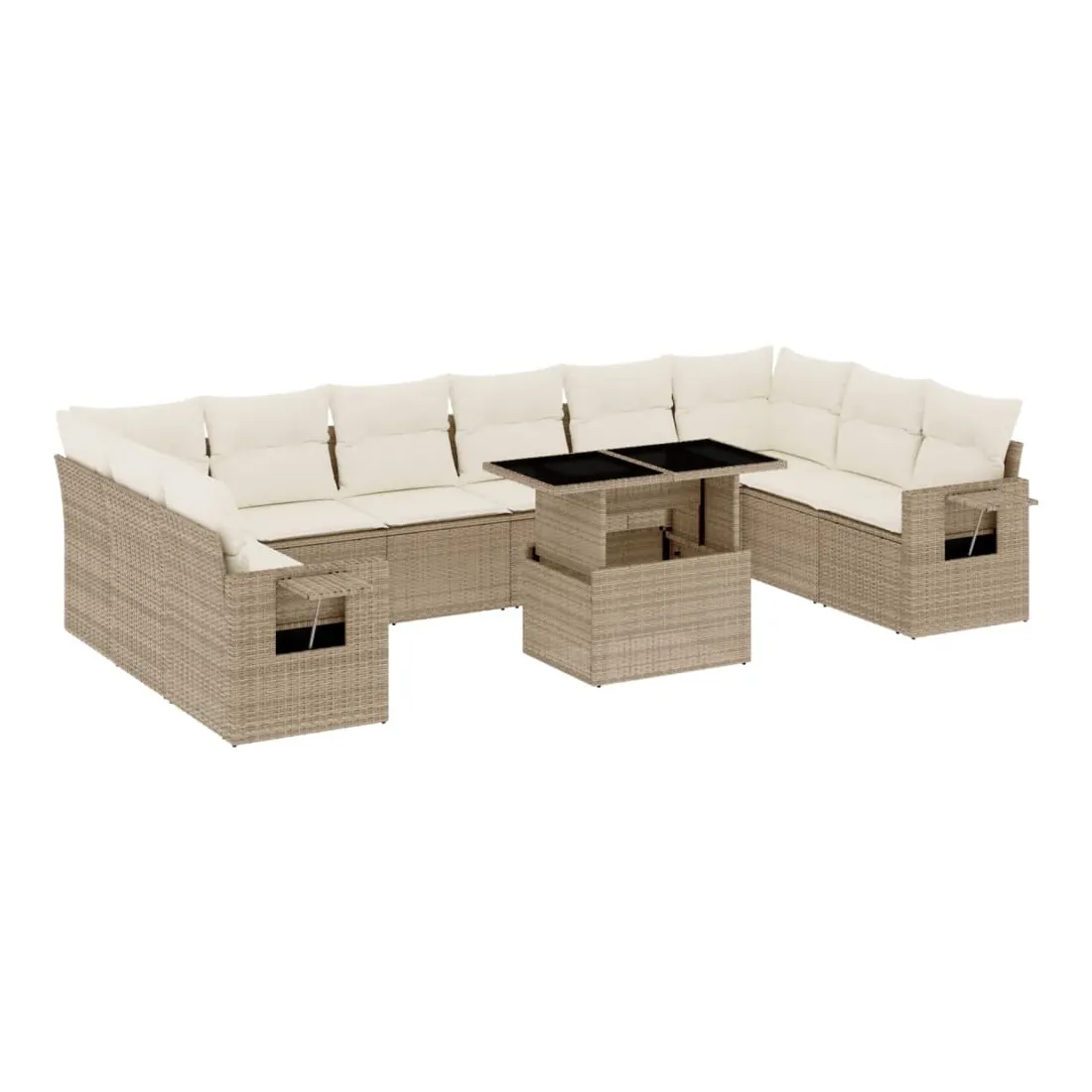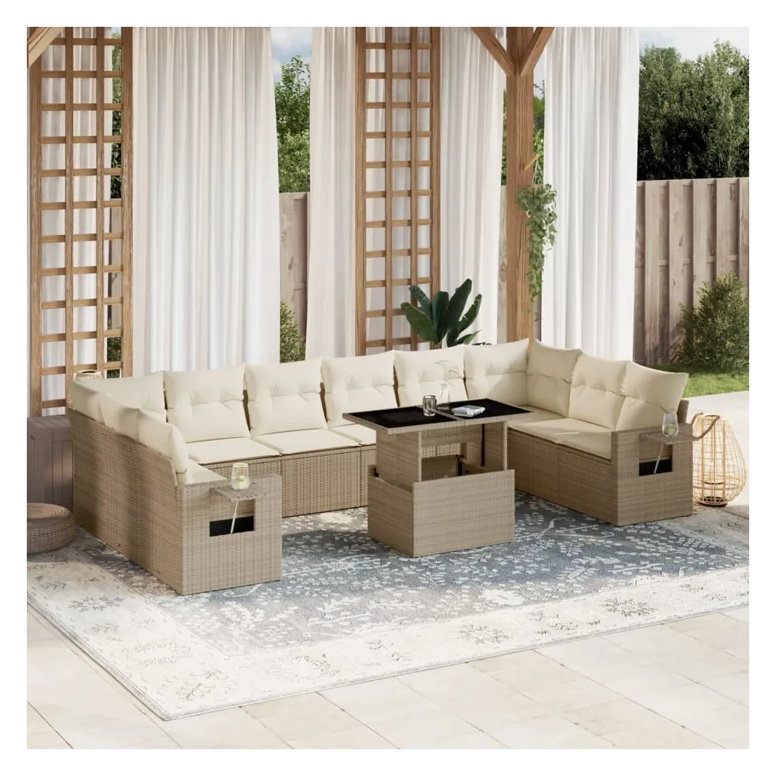 Cet ensemble de canapés de jardin est le complément parfait de votre arrière-cour, terrasse ou patio, offrant un espace confortable et accueillant pour discuter avec la famille et les amis ou simplement se détendre et profiter de l'extérieur. Matériau durable : la résine tressée, également connue sous le nom de poly rotin, est un matériau synthétique solide et nécessitant peu d'entretien qui ressemble au rotin naturel. Il est léger, facile à nettoyer et couramment utilisé pour les meubles d'extérieur en raison de sa durabilité et de ses propriétés de résistance aux intempéries.Dessus de table réglable : le dessus de table peut être soulevé pour rendre la table plus haute, ce qui transforme la table d'extérieur d'une table basse à une table de salle à manger. Elle est parfaite pour recevoir des invités ou prendre des repas à l'extérieur.Table d'appoint pratique : ce mobilier d'extérieur comprend des tables d'appoint pliables avec un ressort à gaz sur les accoudoirs, offrant des endroits pratiques pour garder vos essentiels à portée de main. Expérience d'assise confortable : ce mobilier d'extérieur, doté de coussins épais, offre une expérience d'assise confortable.Conception modulaire : cet ensemble de meubles d'extérieur a une conception modulaire, ce qui le rend complètement flexible et facile à déplacer, afin que vous puissiez créer un agencement de meubles d'extérieur personnalisé. Bon à savoir :Pour que vos meubles d'extérieur restent beaux, nous vous recommandons de les protéger avec une housse imperméable.